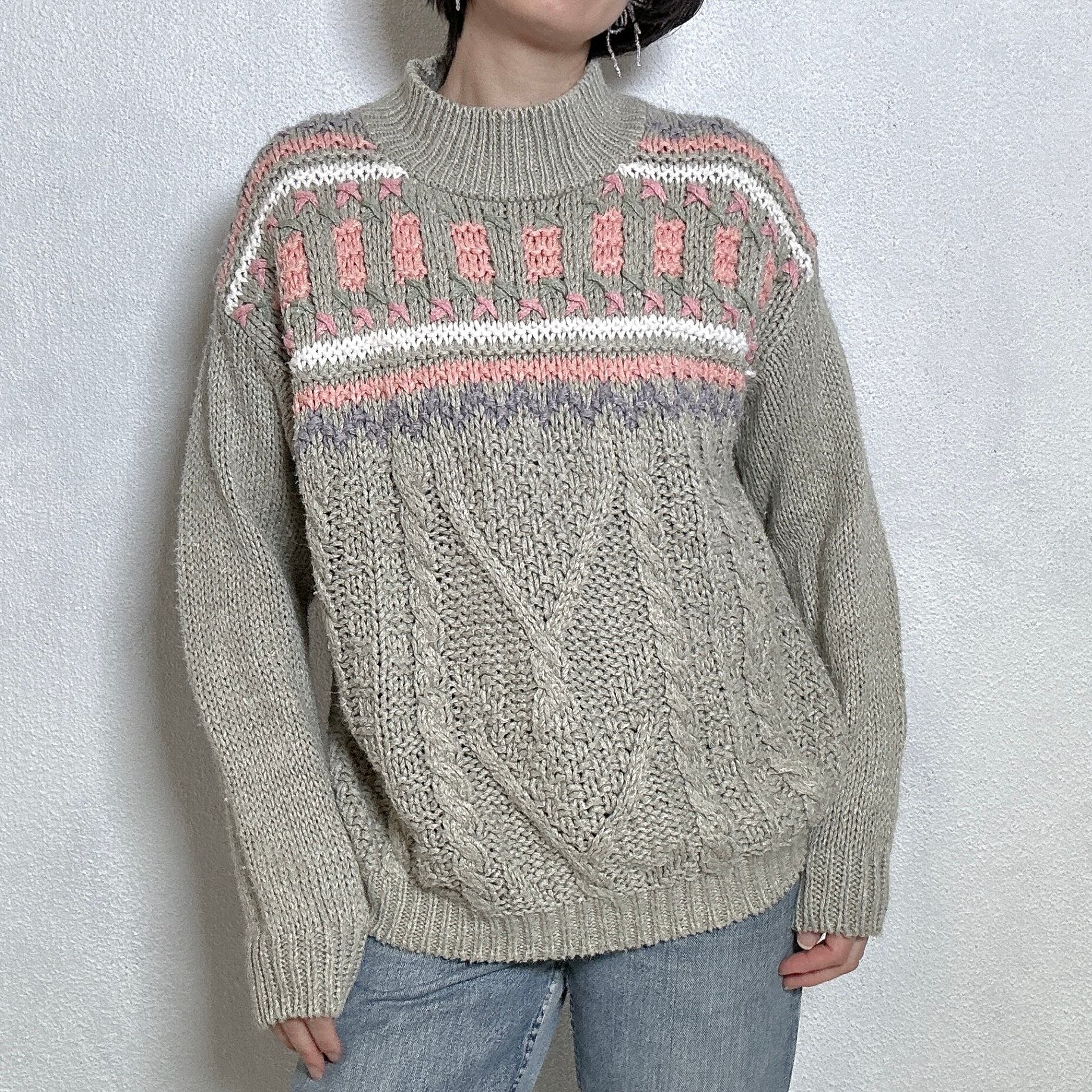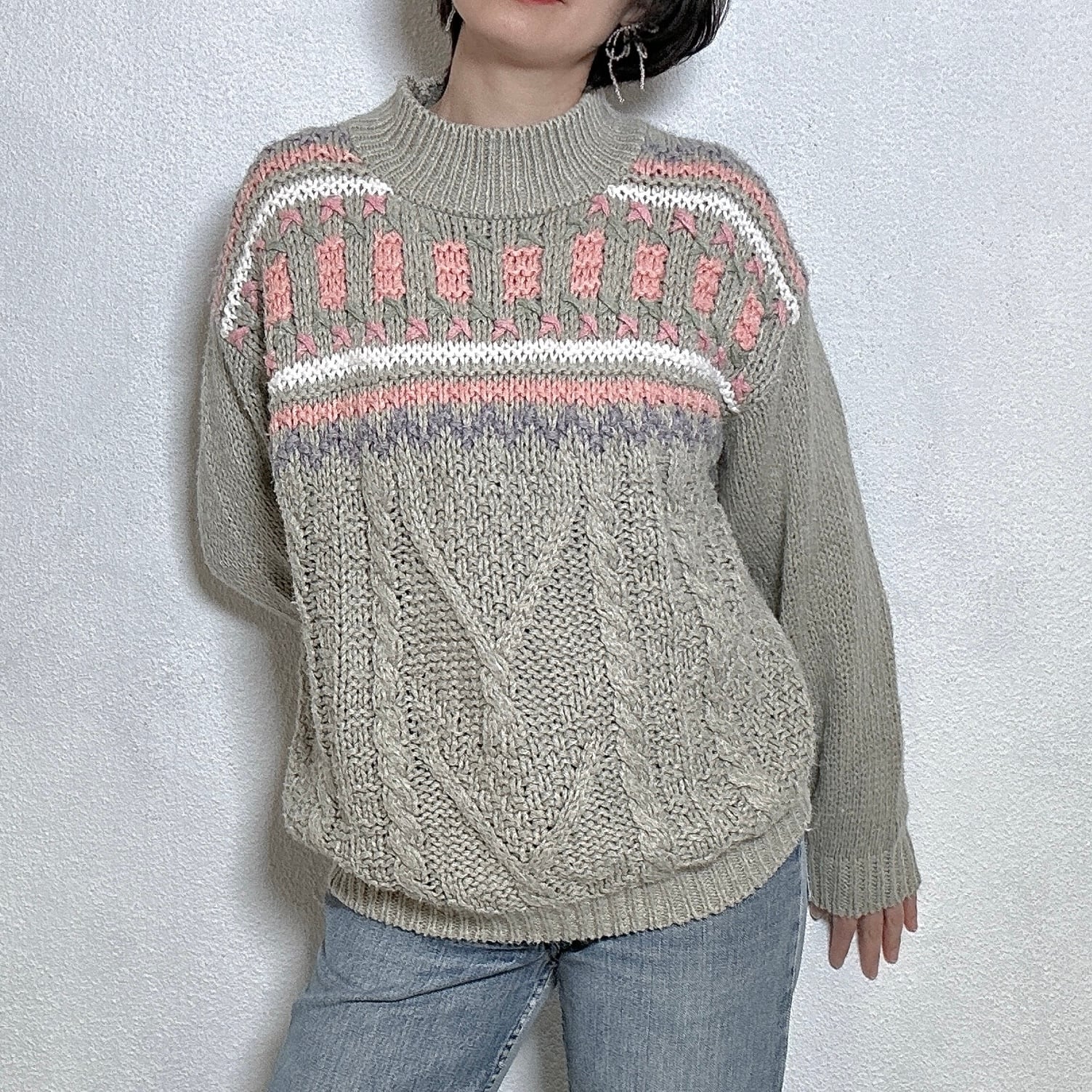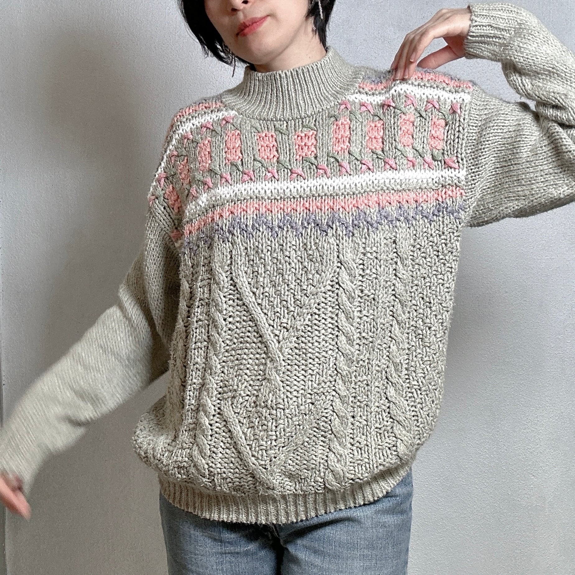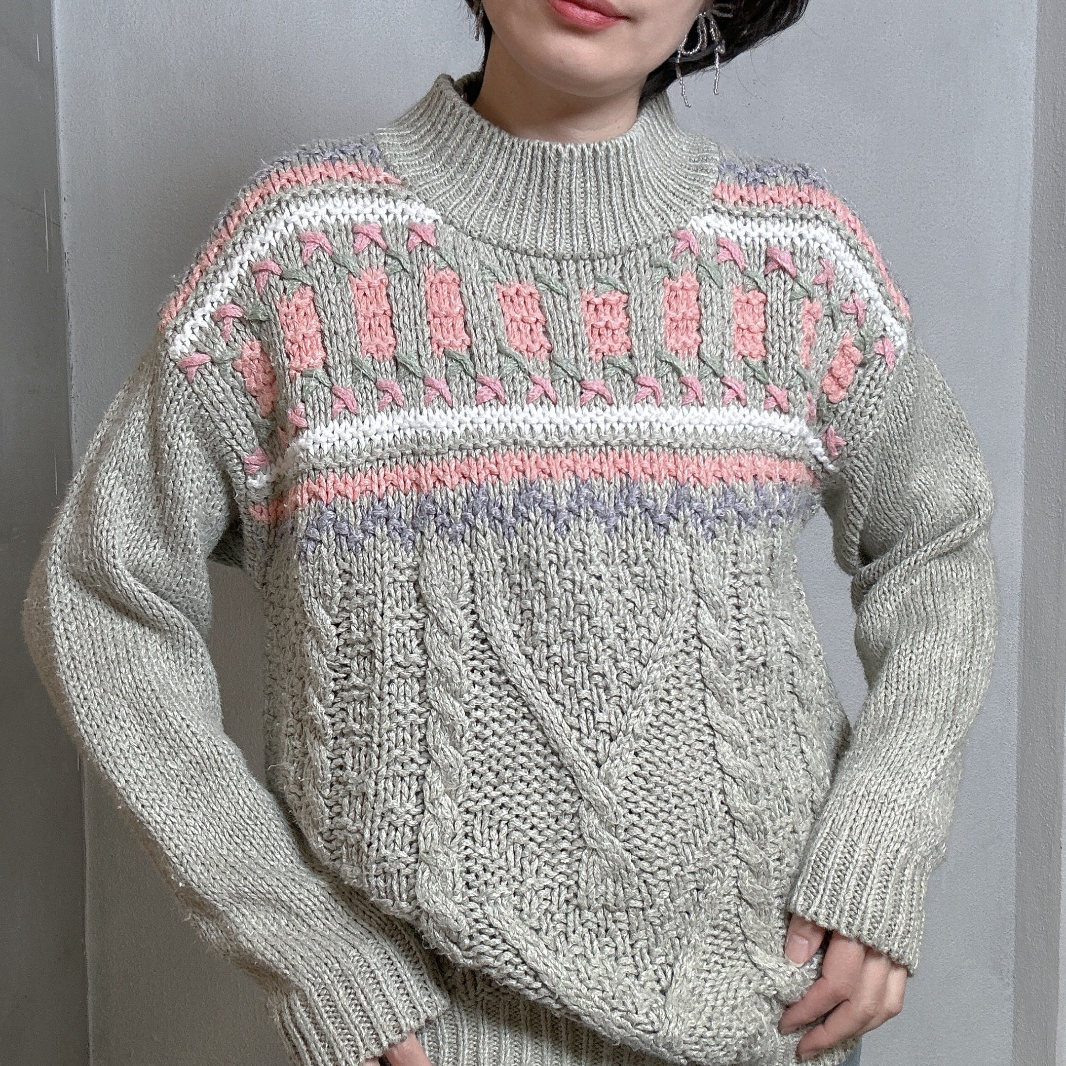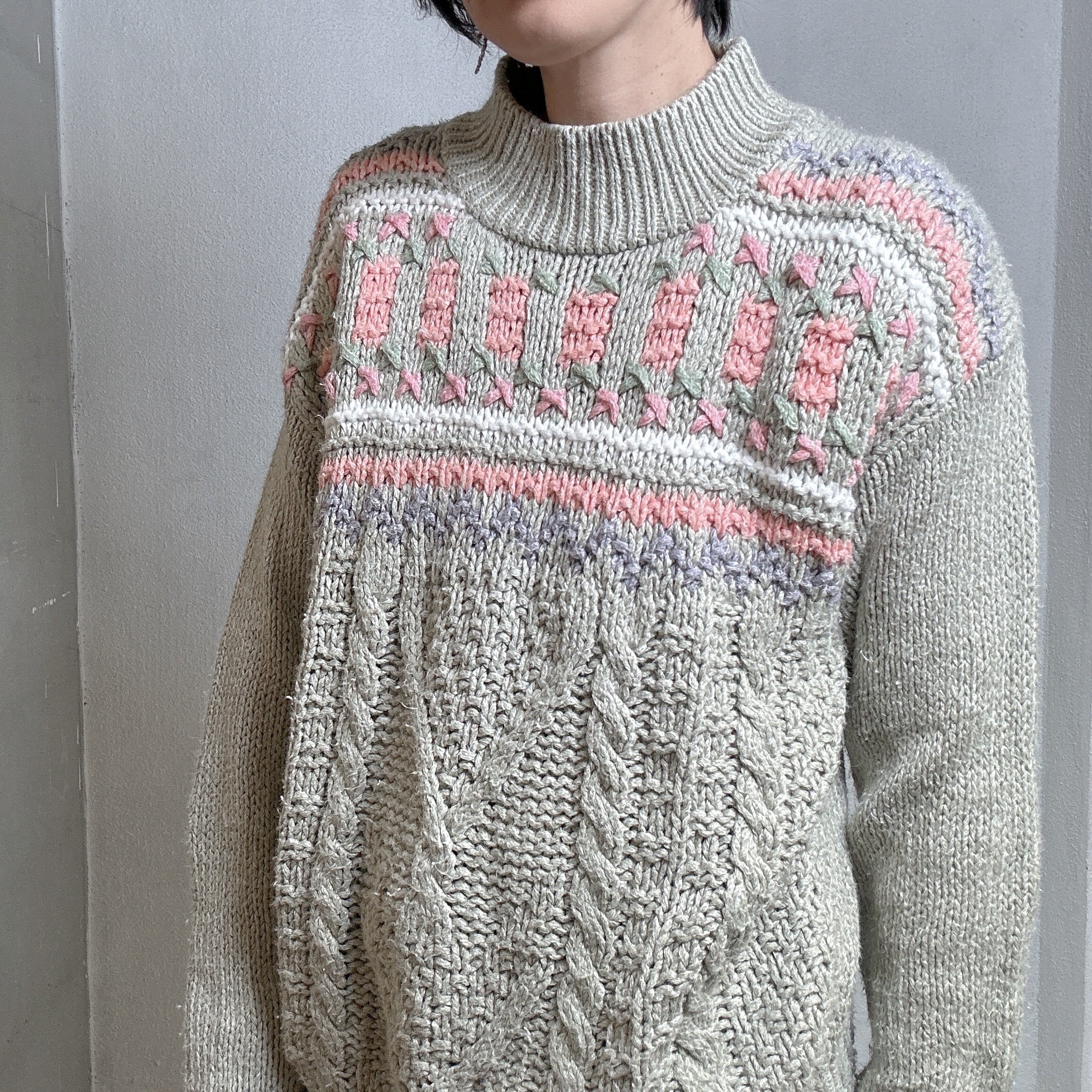 色とりどりの手編みセーターです。全体的に淡い色味で優しい雰囲気に!