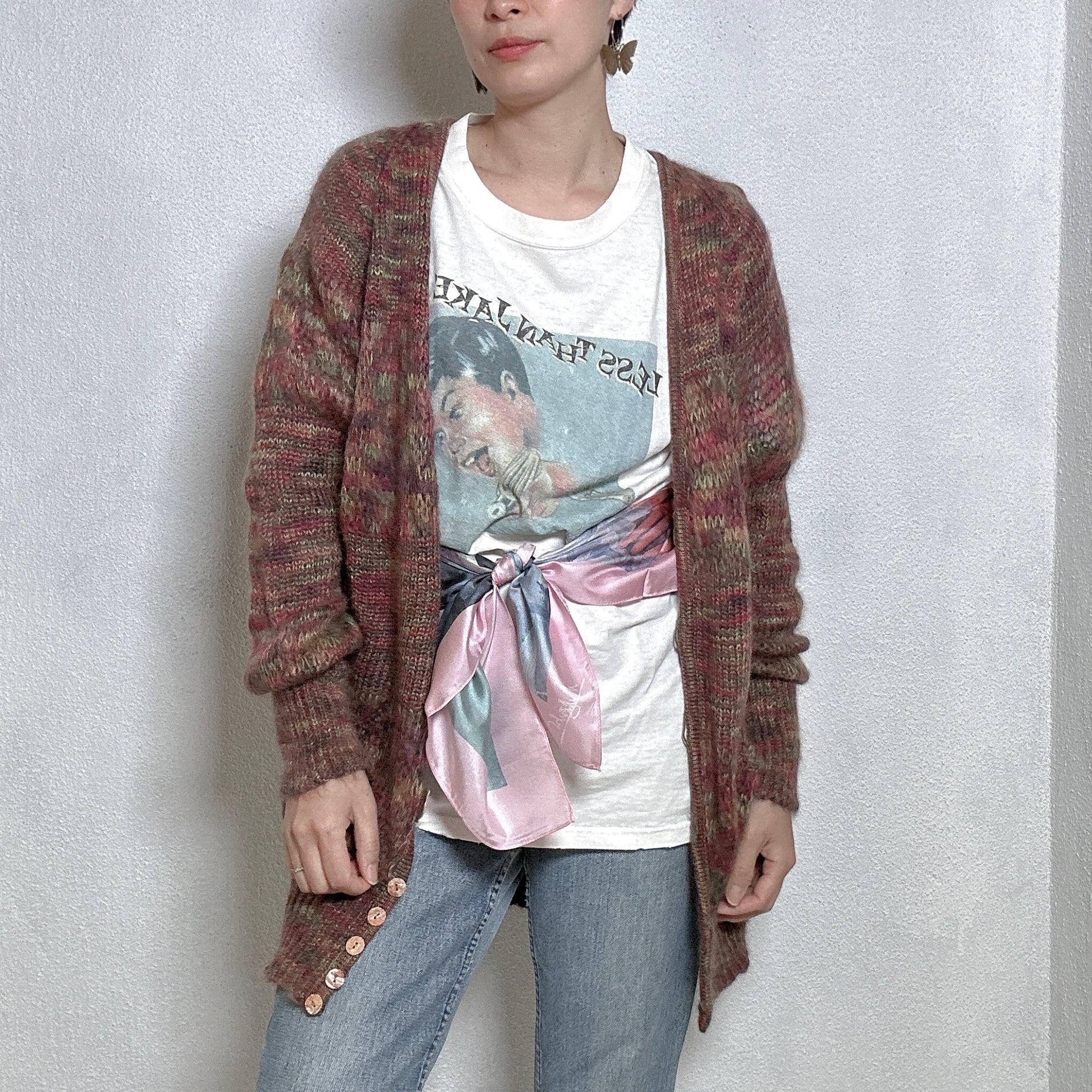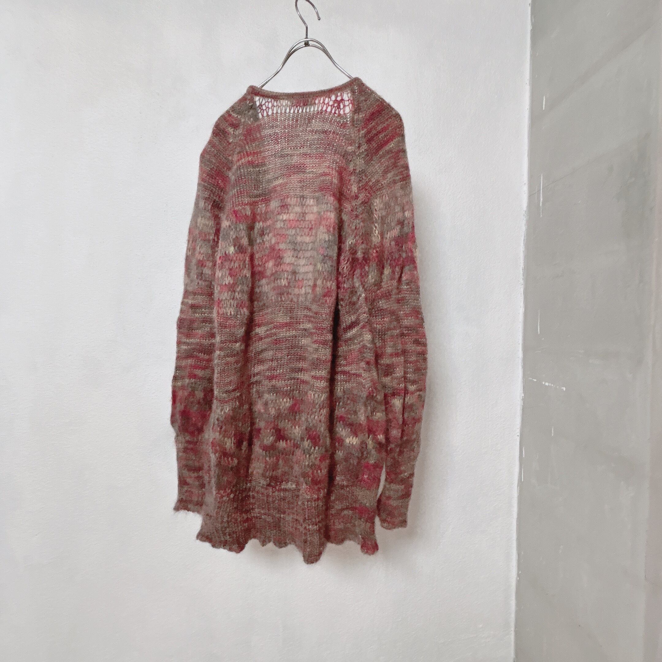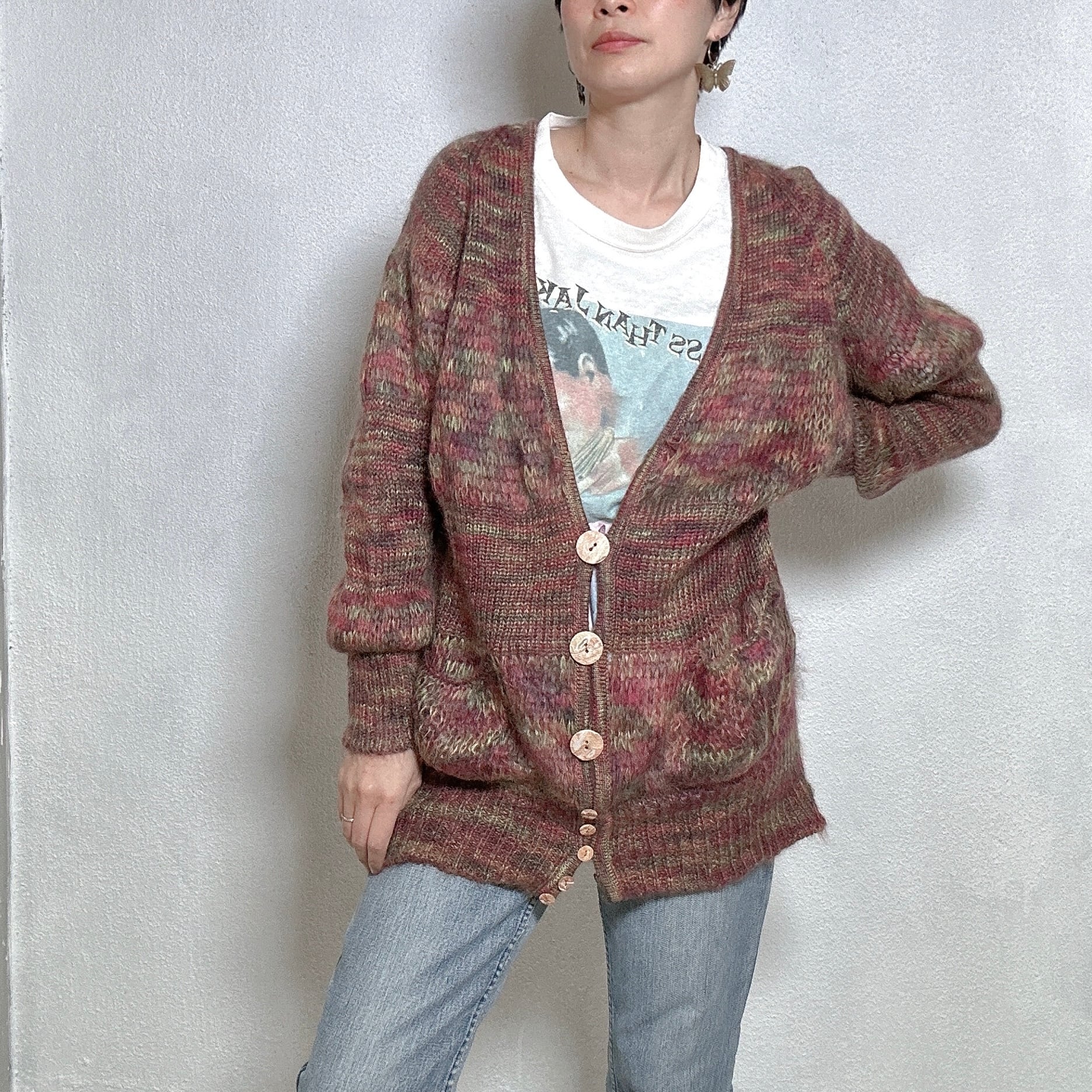 魅力的なミックスカラーのモヘアライトニットカーディガンです。柔らかな素材感とたくさん施されたシェルボタンがかわいい、これからの季節にぴったりなアイテムです!
