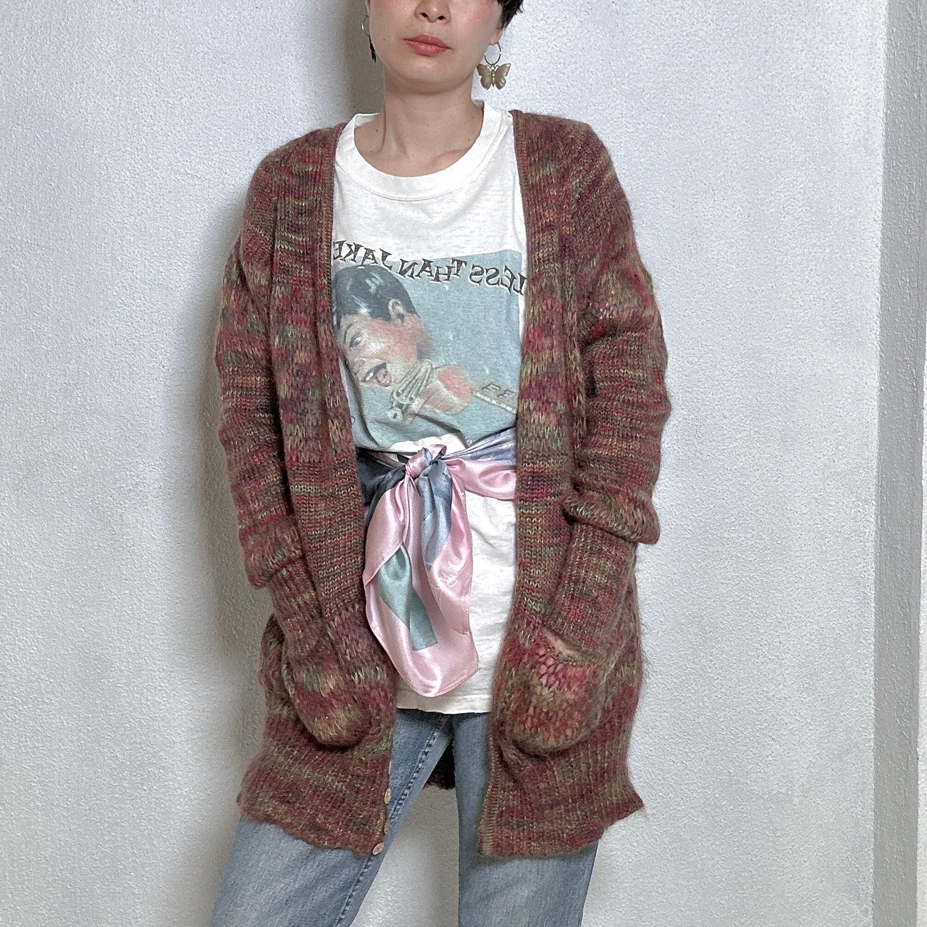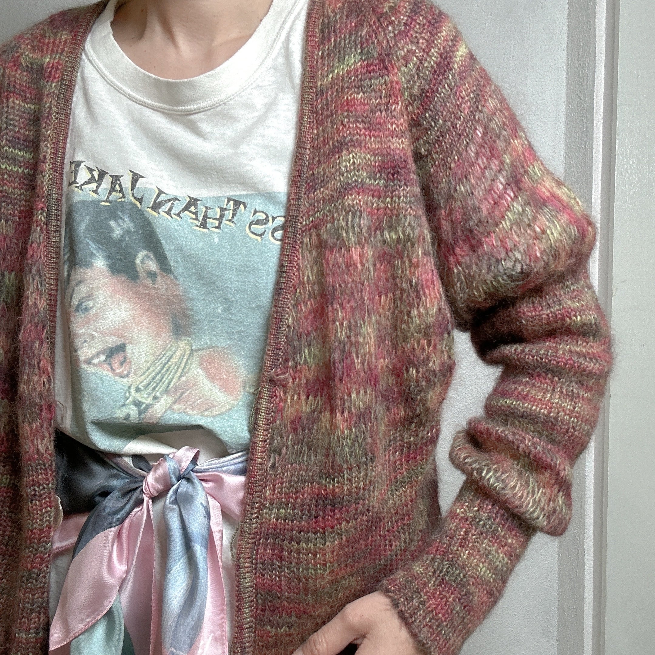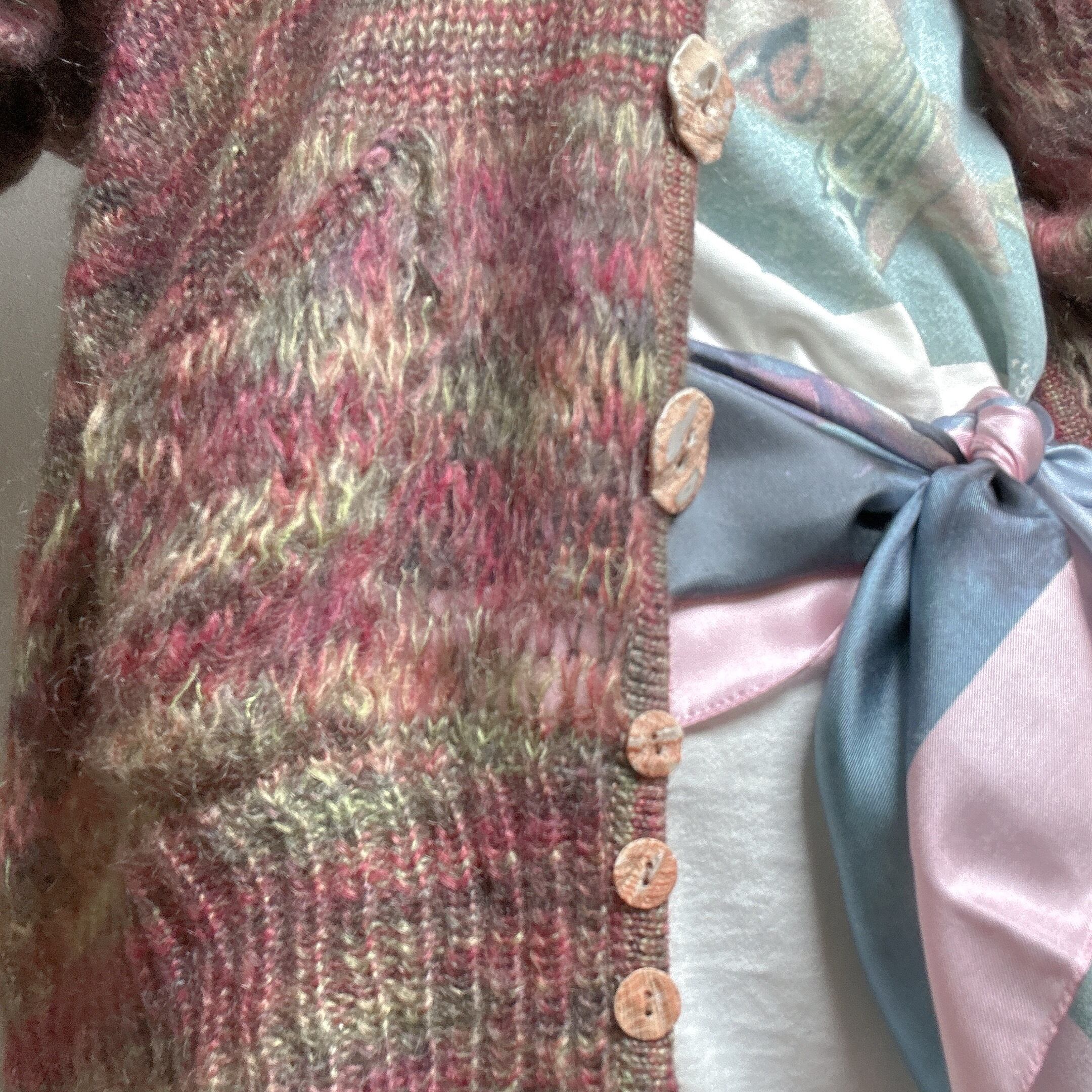 魅力的なミックスカラーのモヘアライトニットカーディガンです。柔らかな素材感とたくさん施されたシェルボタンがかわいい、これからの季節にぴったりなアイテムです!