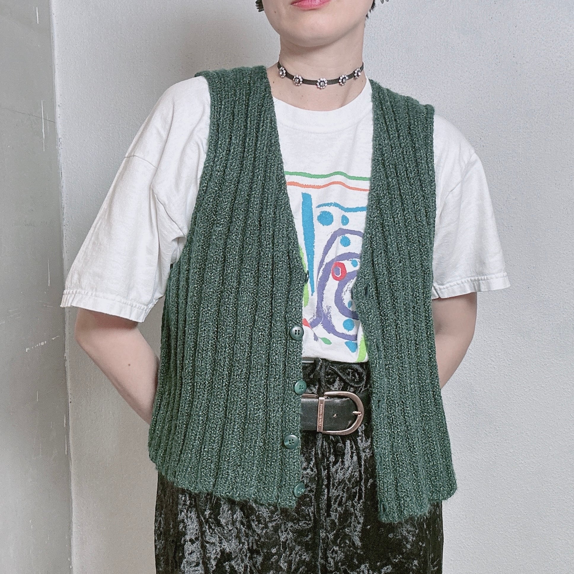 1990年代のミックスグリーンカラーが魅力的なニットベストです!