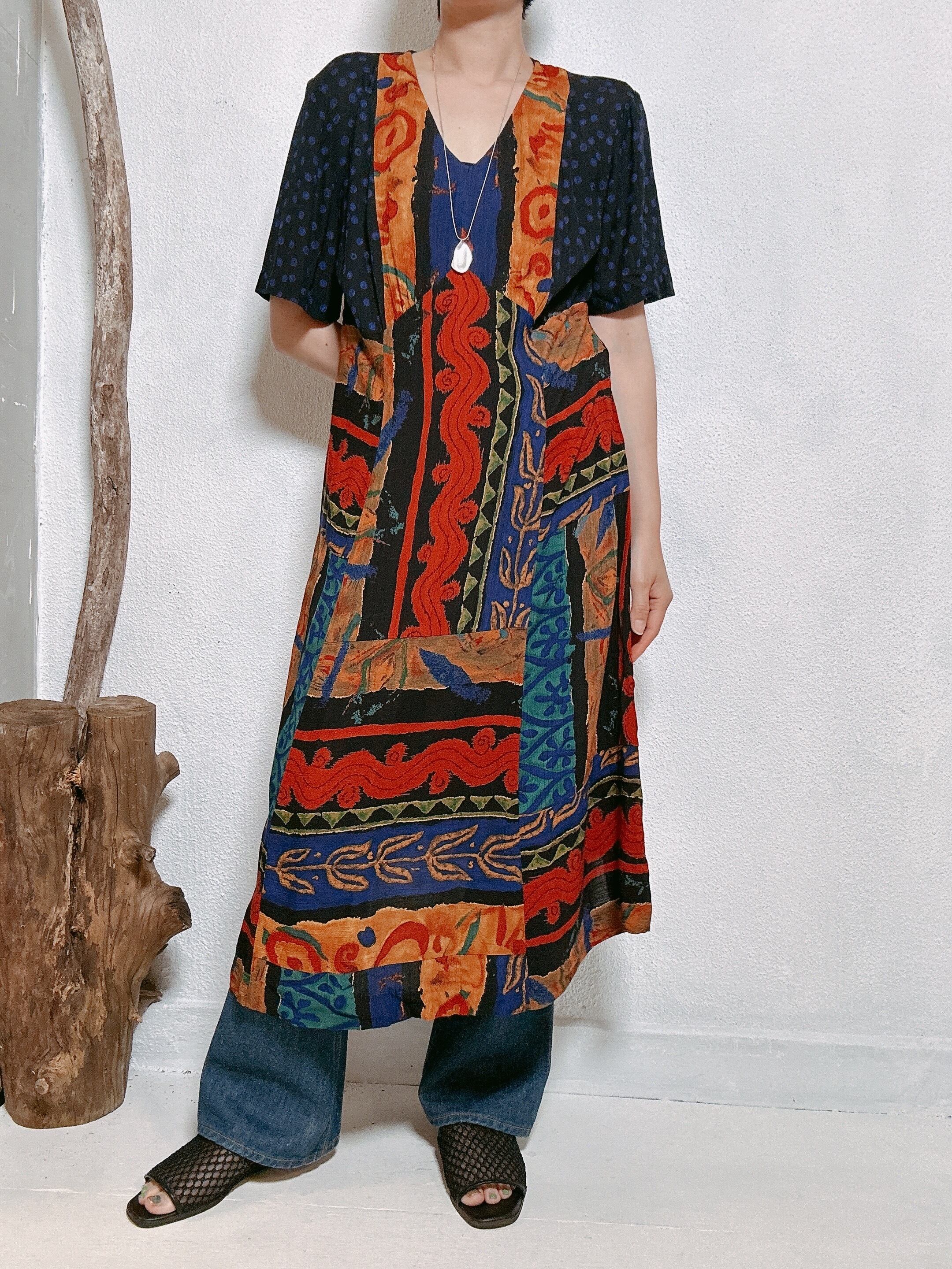 1990’s vintage "CAROLE LITTLE DRESS" geometric long dress m106