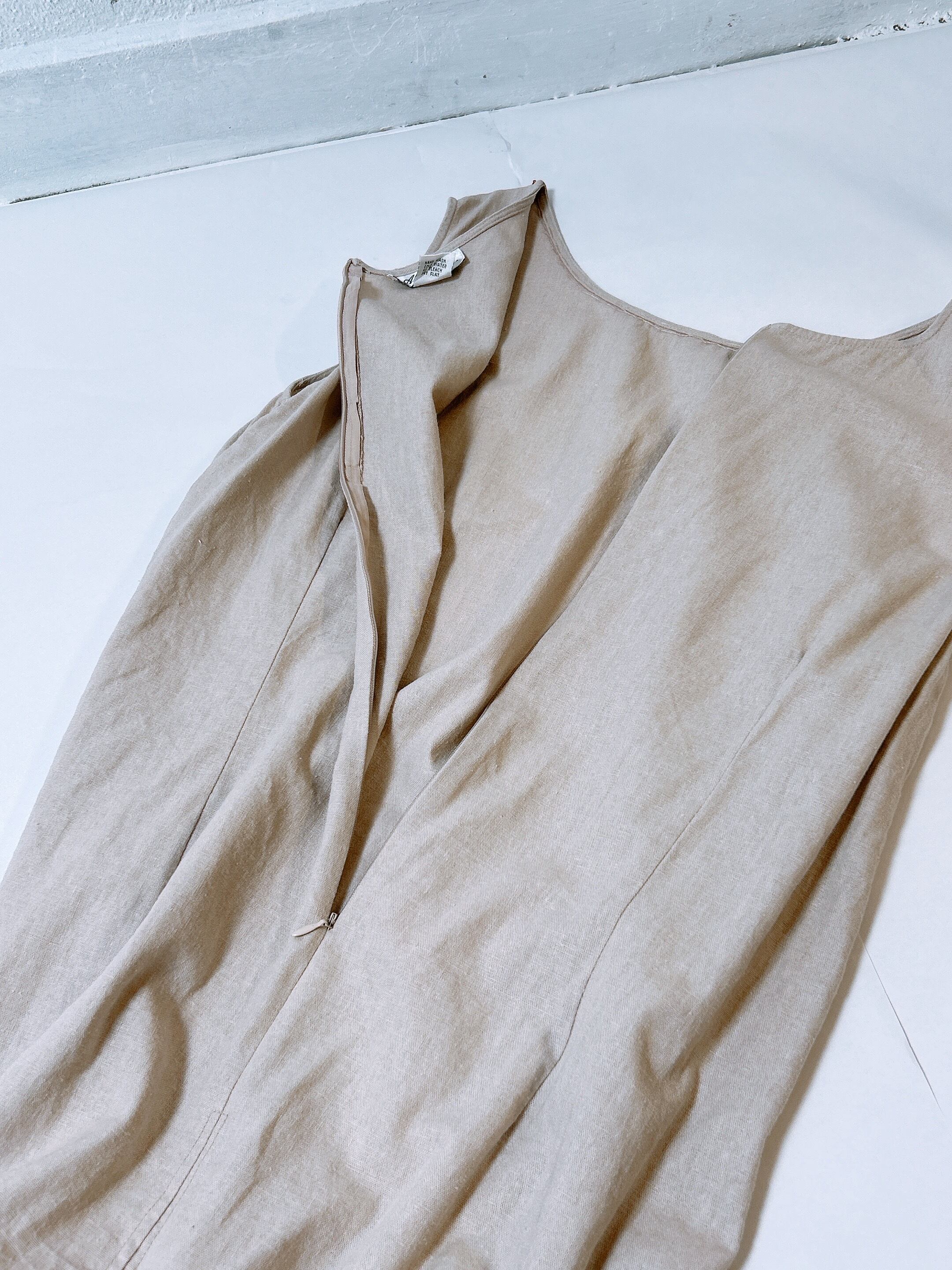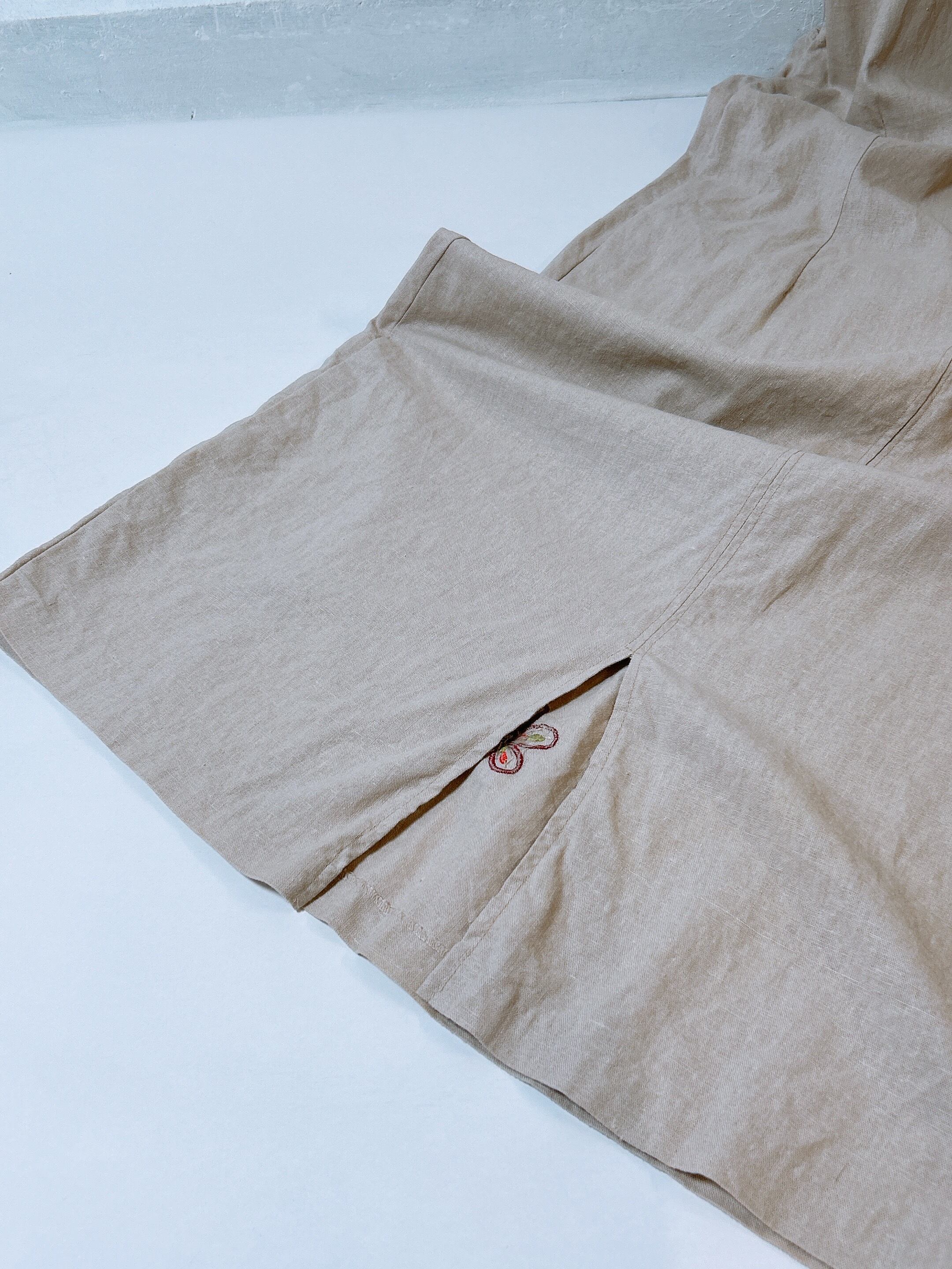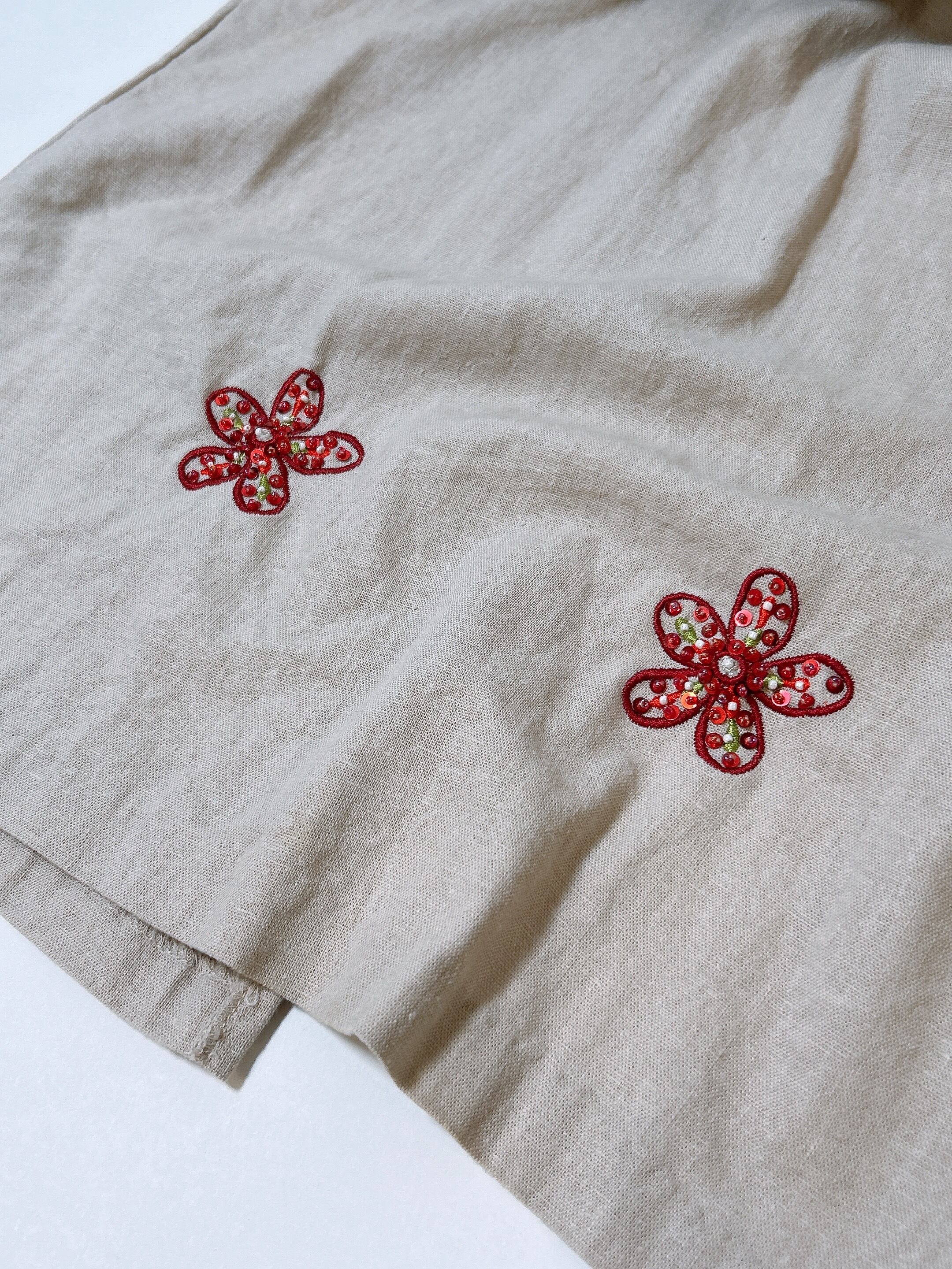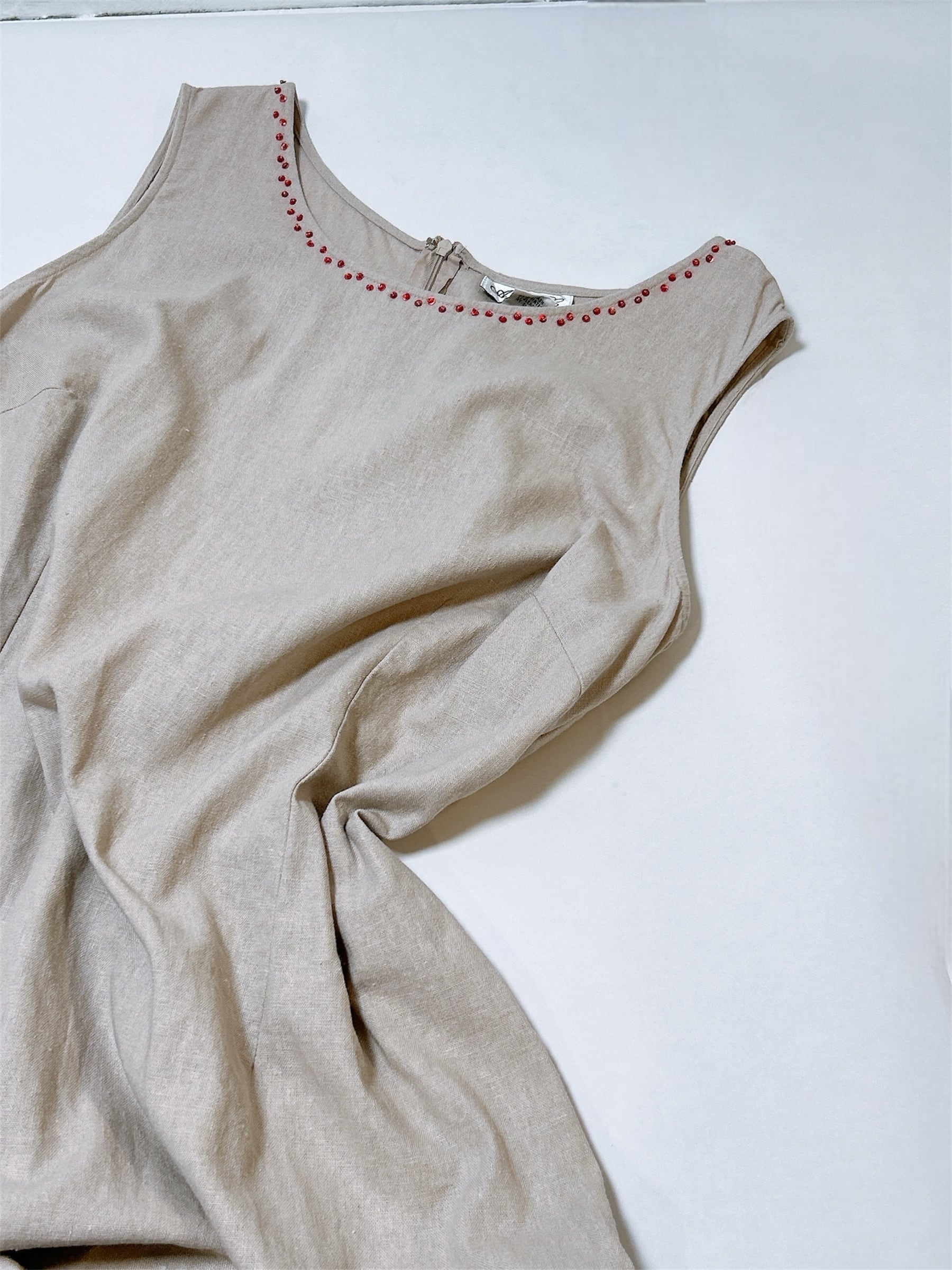 1990's vintage flower beads linen dress m123