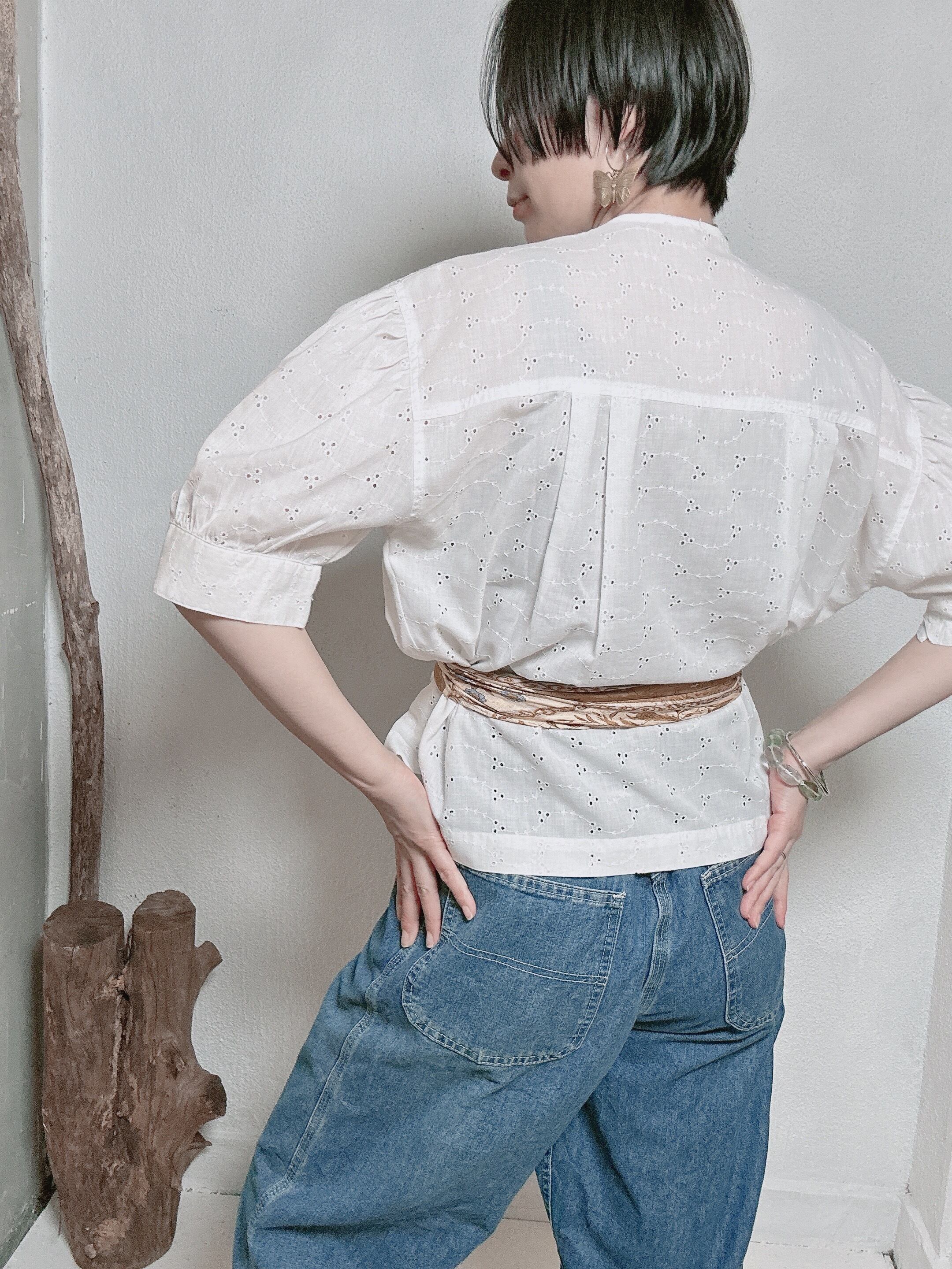 1960’s 70’s vintage frill lace cotton blouse m112