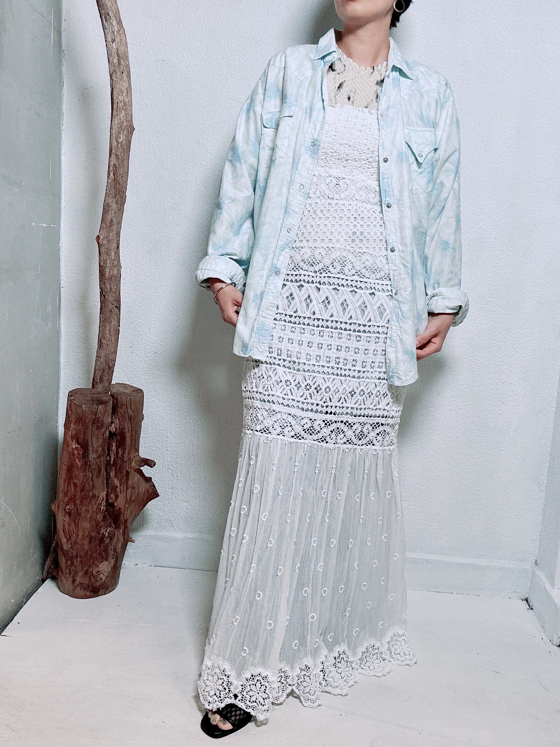繊細なかぎ編みと上品な柔らかいレースコットン生地が特徴的。