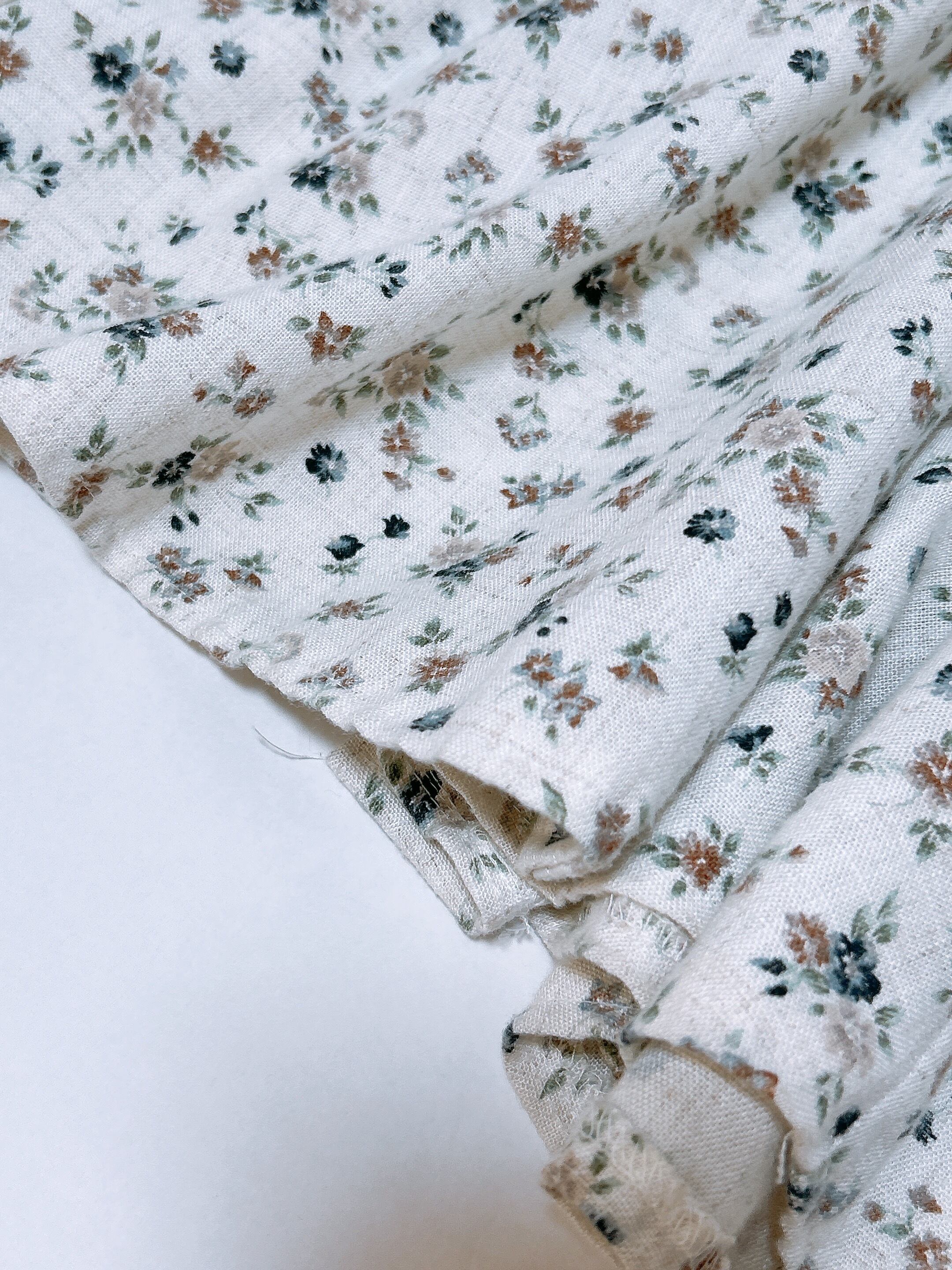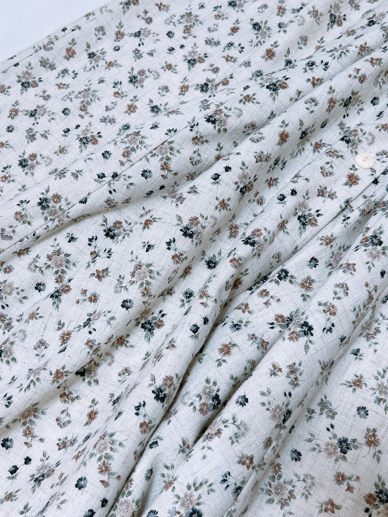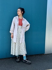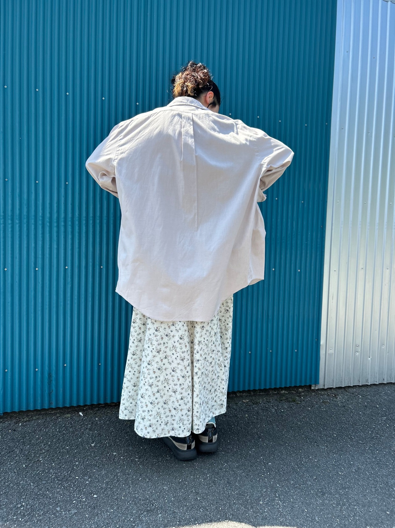ほんのりマーメイドっぽい広がりのあるシルエット!ベージュに細かな小花プリントで、派手すぎず、どんなトップスとも合わせやすいのがポイント◎