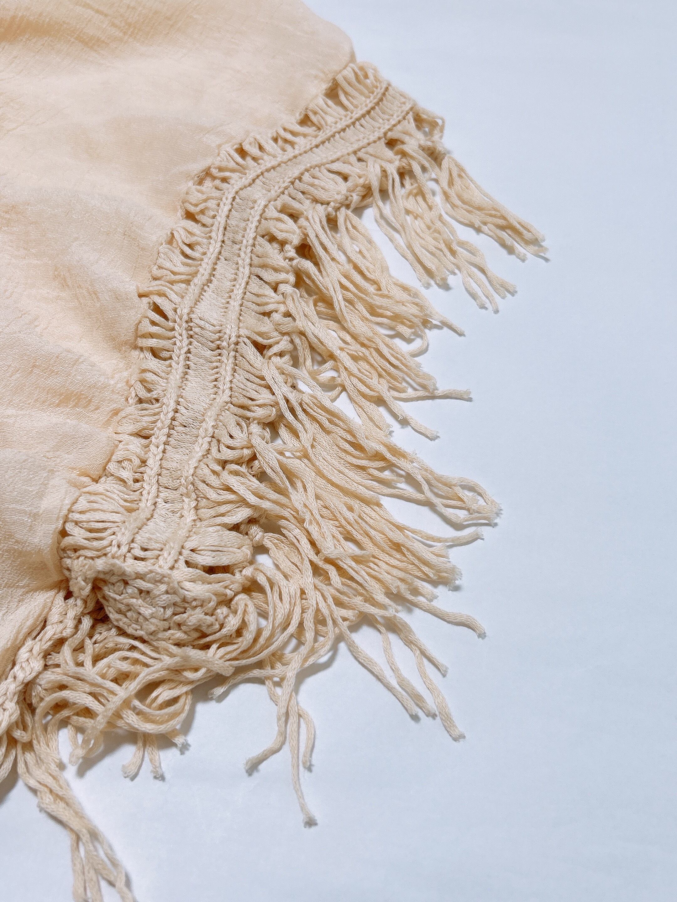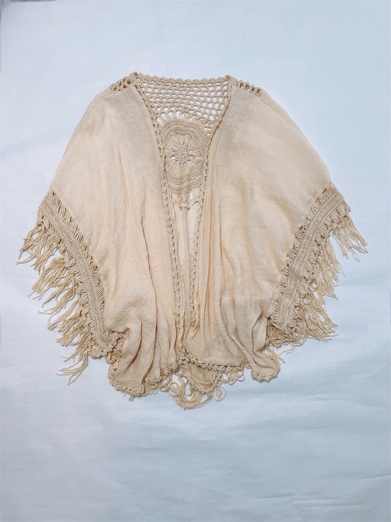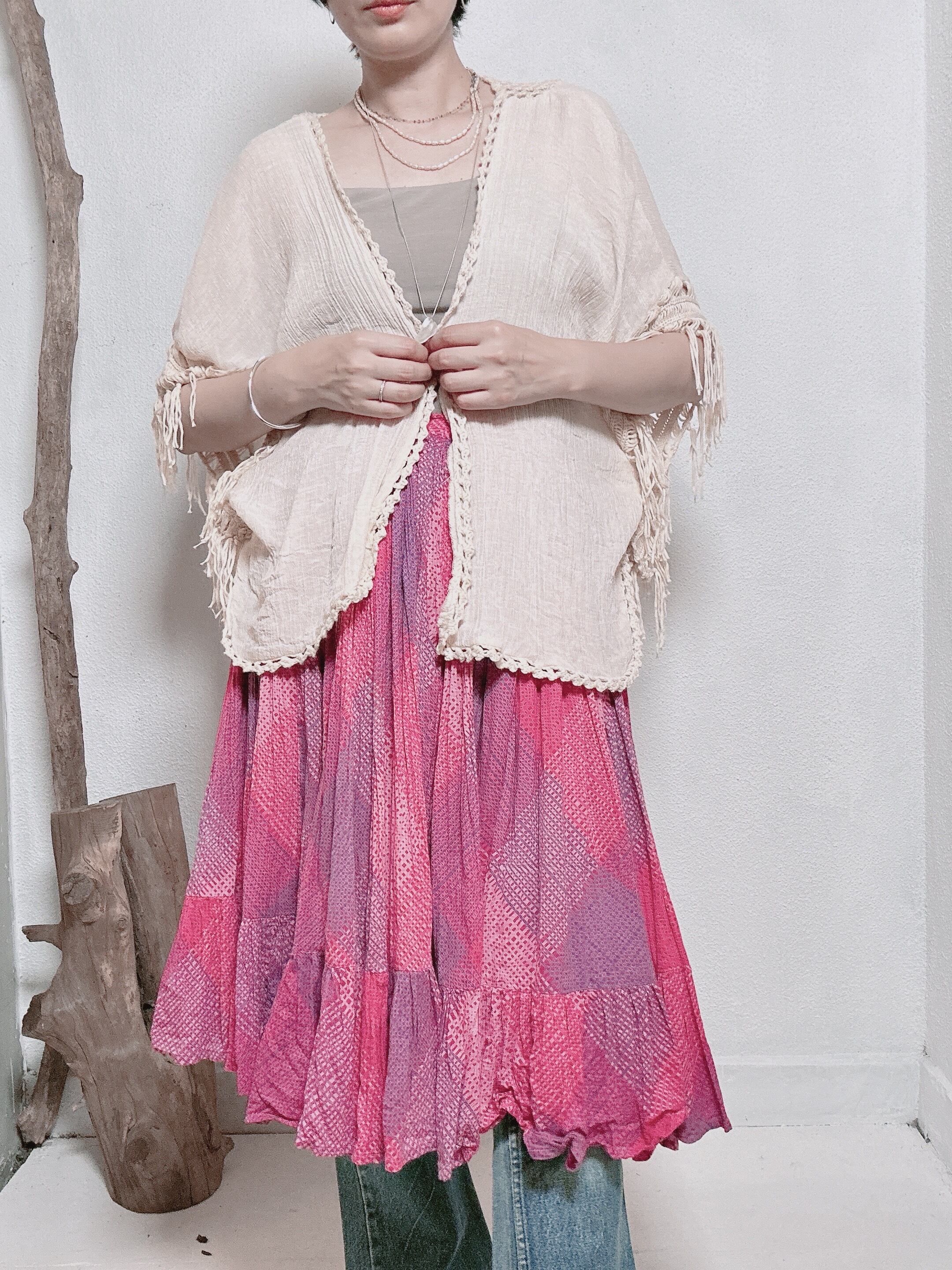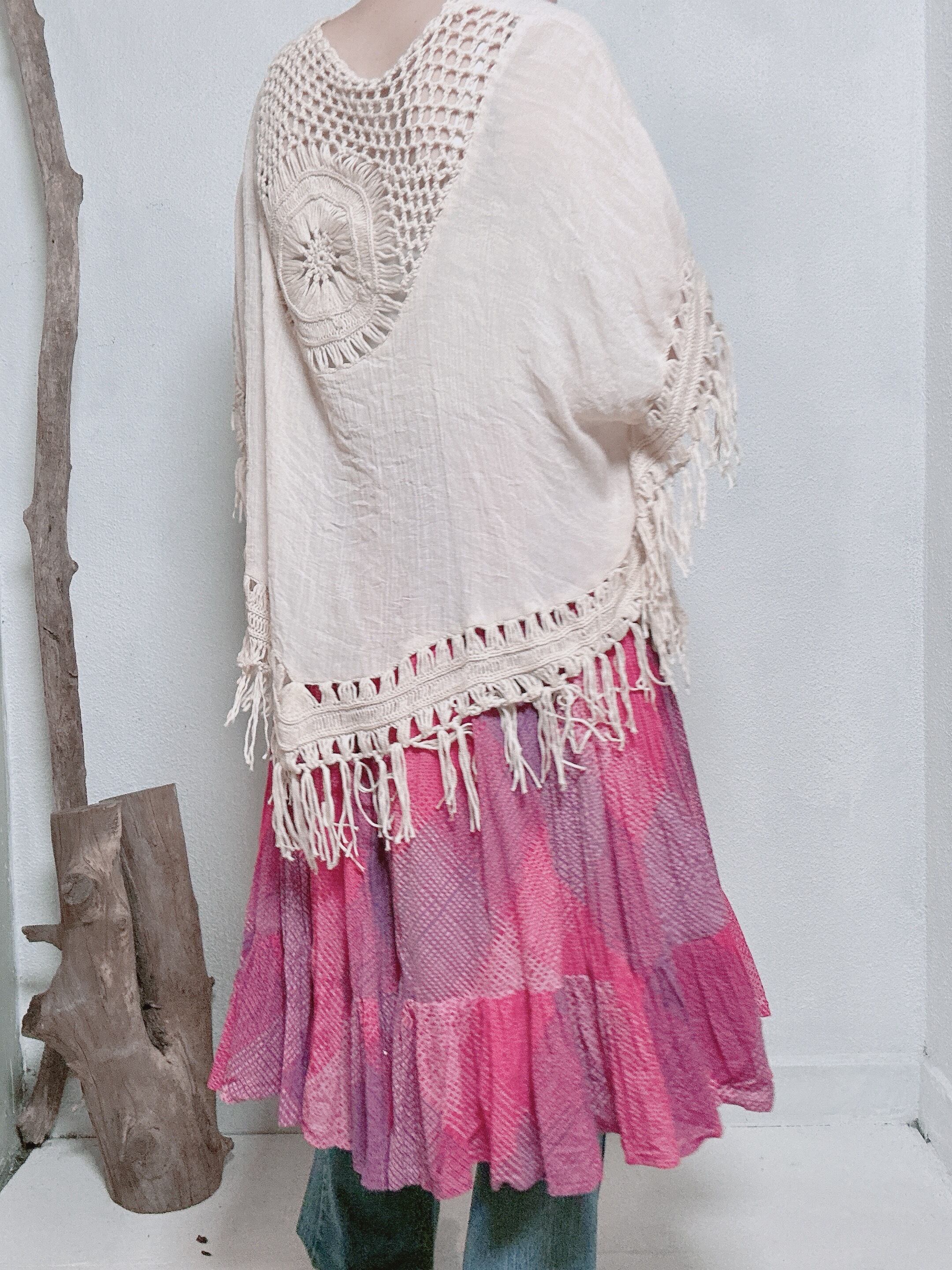 透かし編み×フリンジが目を惹く、ヴィンテージ感たっぷりのフリンジカーディガン。