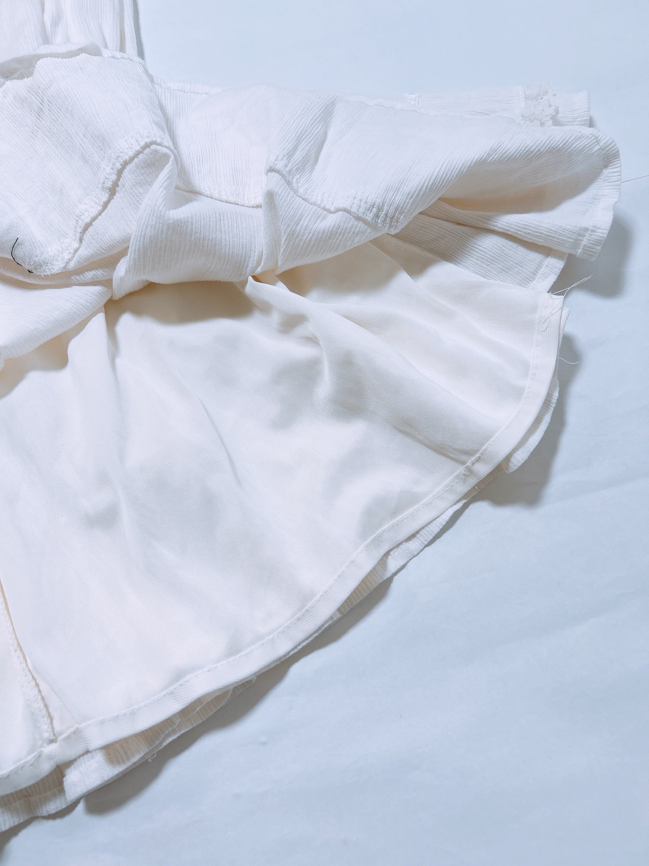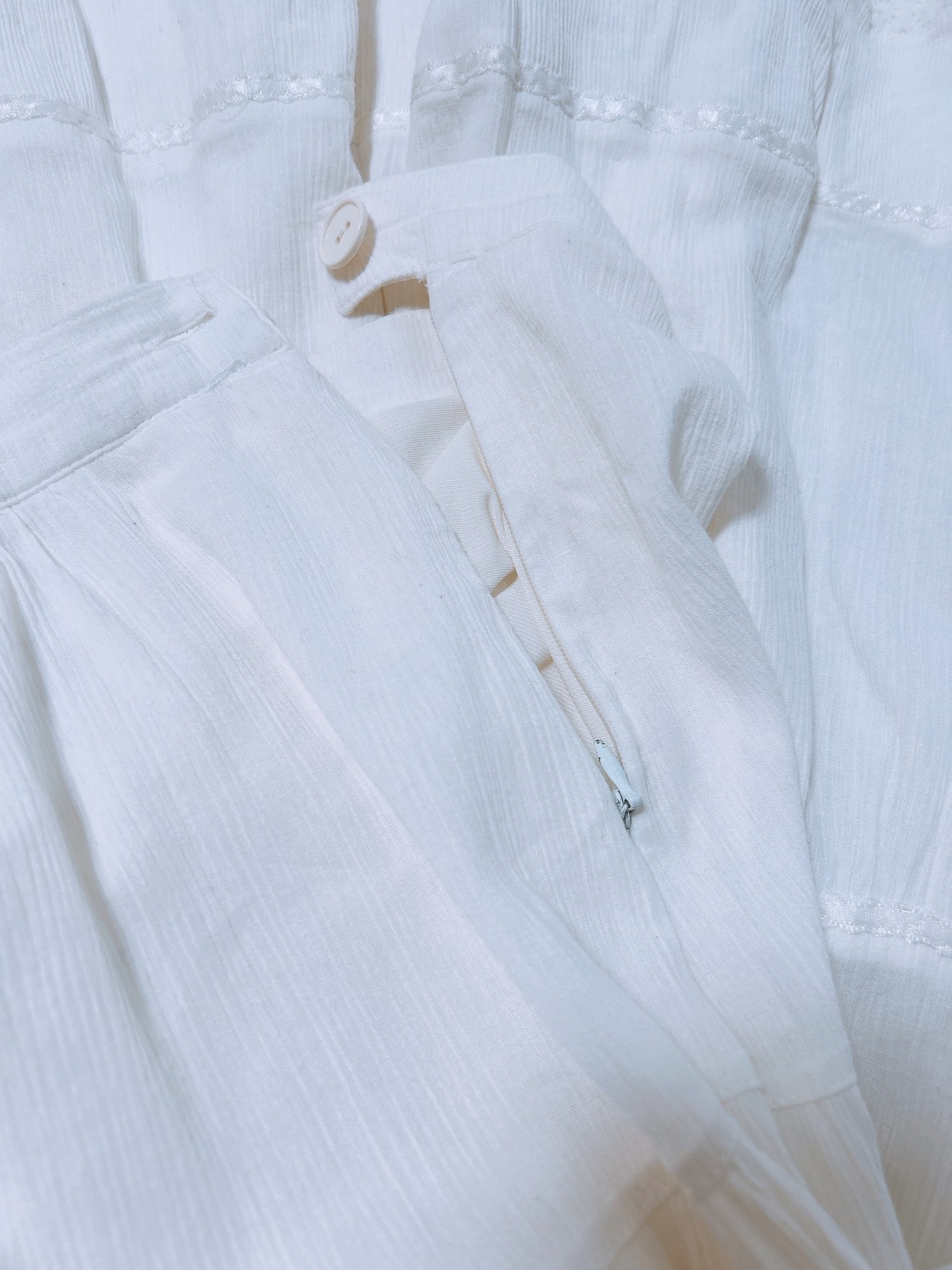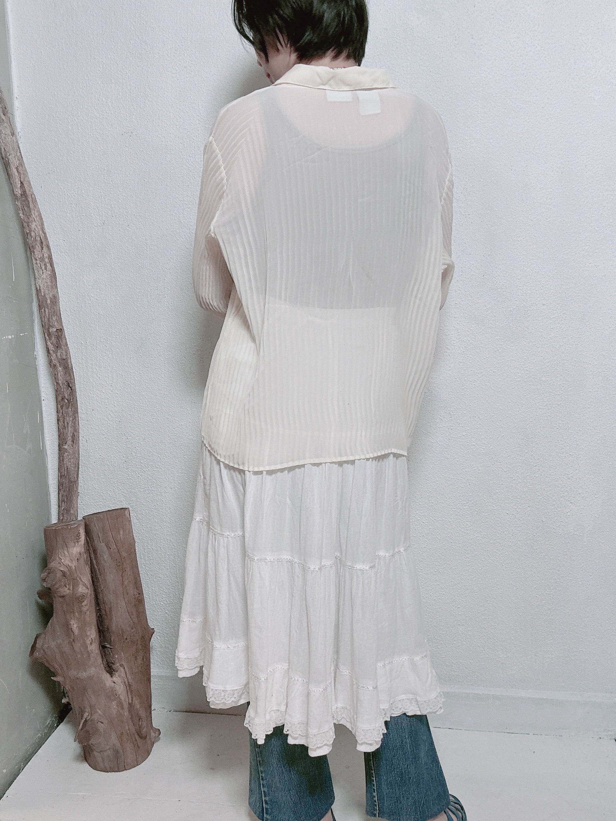 繊細なレースのトリムがアクセントになった、ナチュラルで上品な一枚。