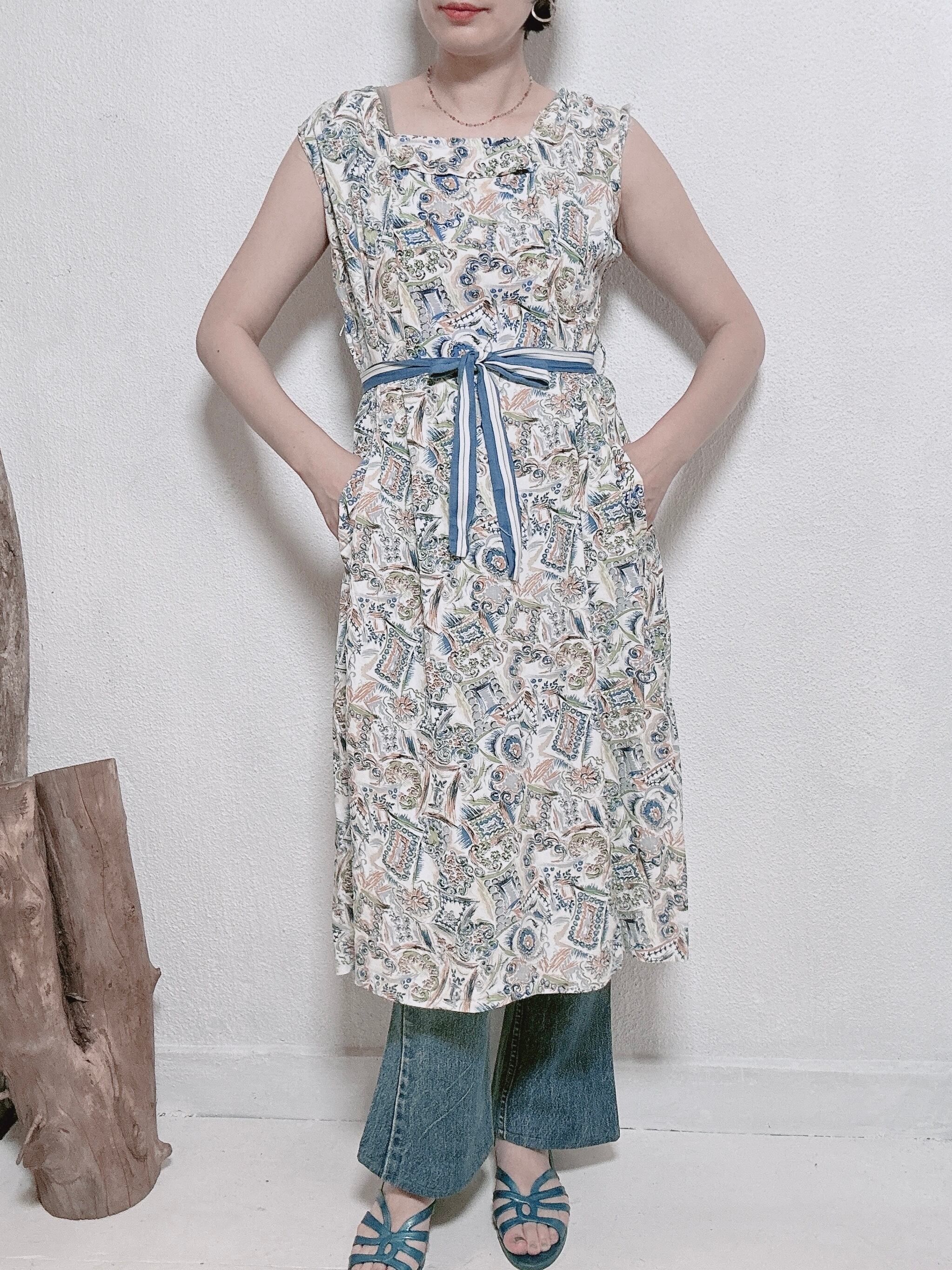爽やかな風をまとうような、ヴィンテージのプリントワンピース。