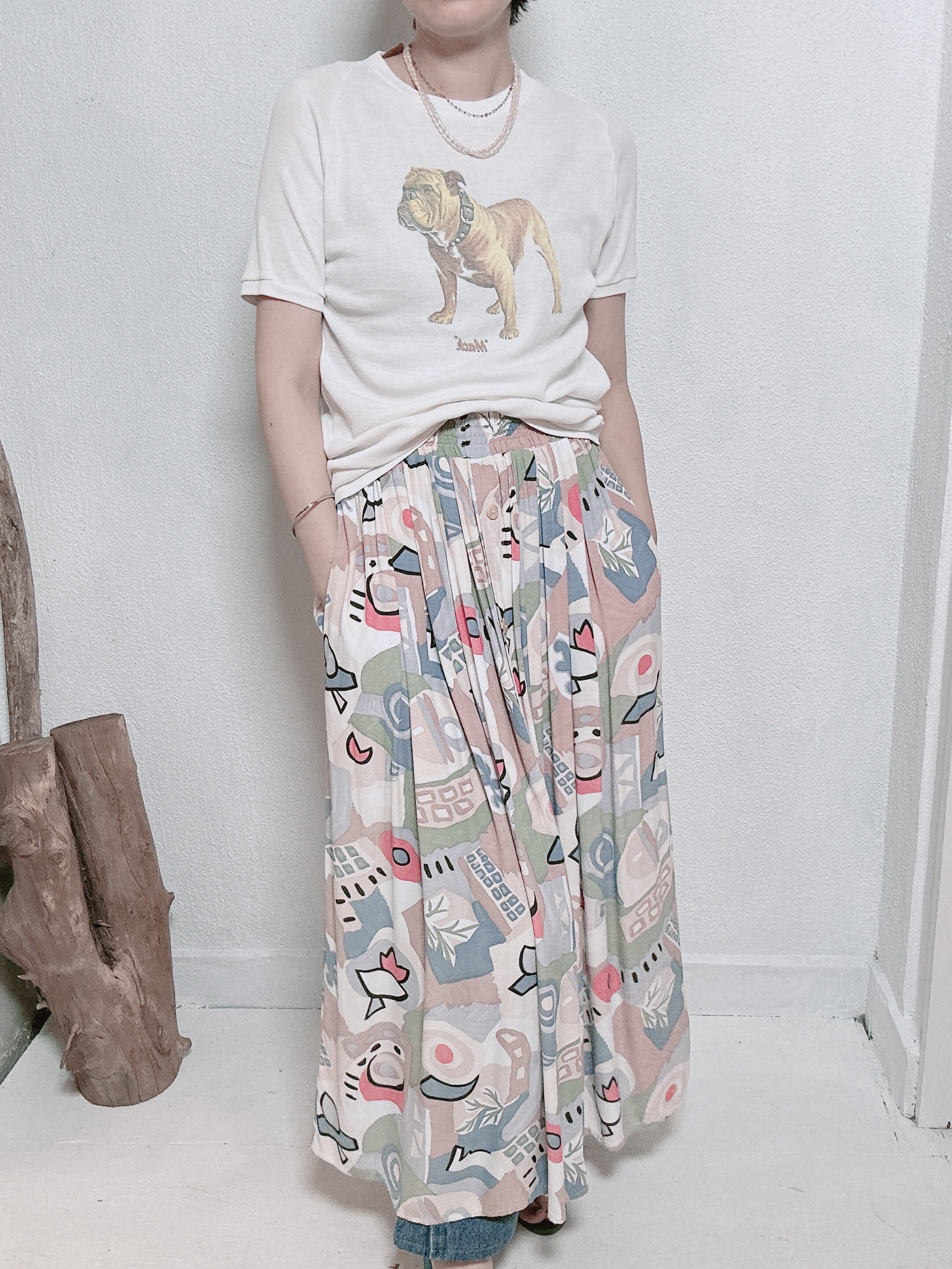 幾何学×植物柄の絶妙ミックスが目を引く、90sムード漂うヴィンテージスカート。