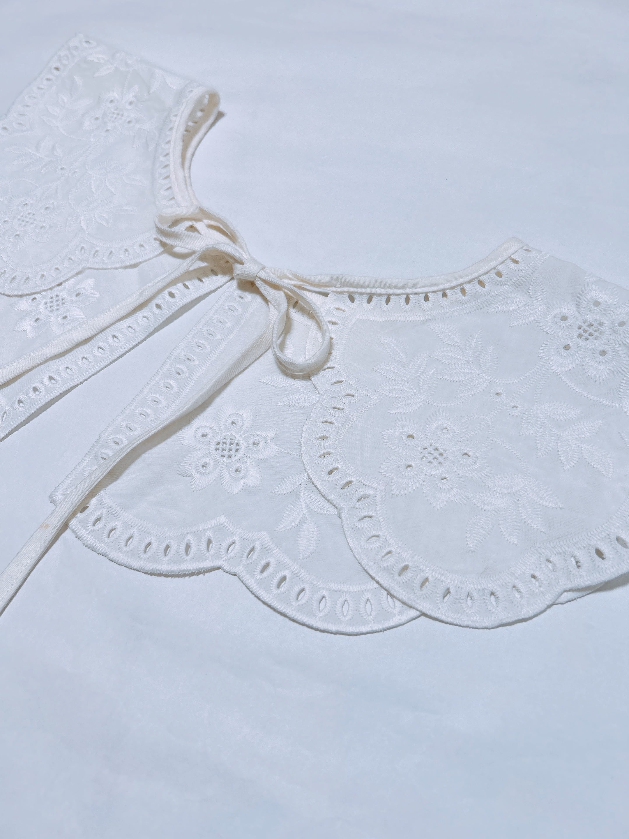 Vintage Embroidered Scallop Collar – White Bloom m148