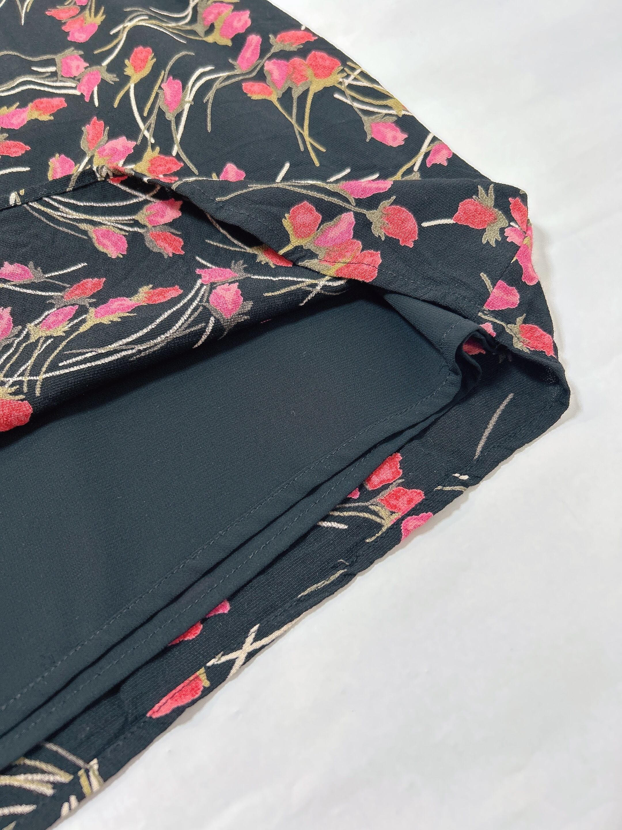 Vintage Black Floral Midi Skirt – Black Floral m155