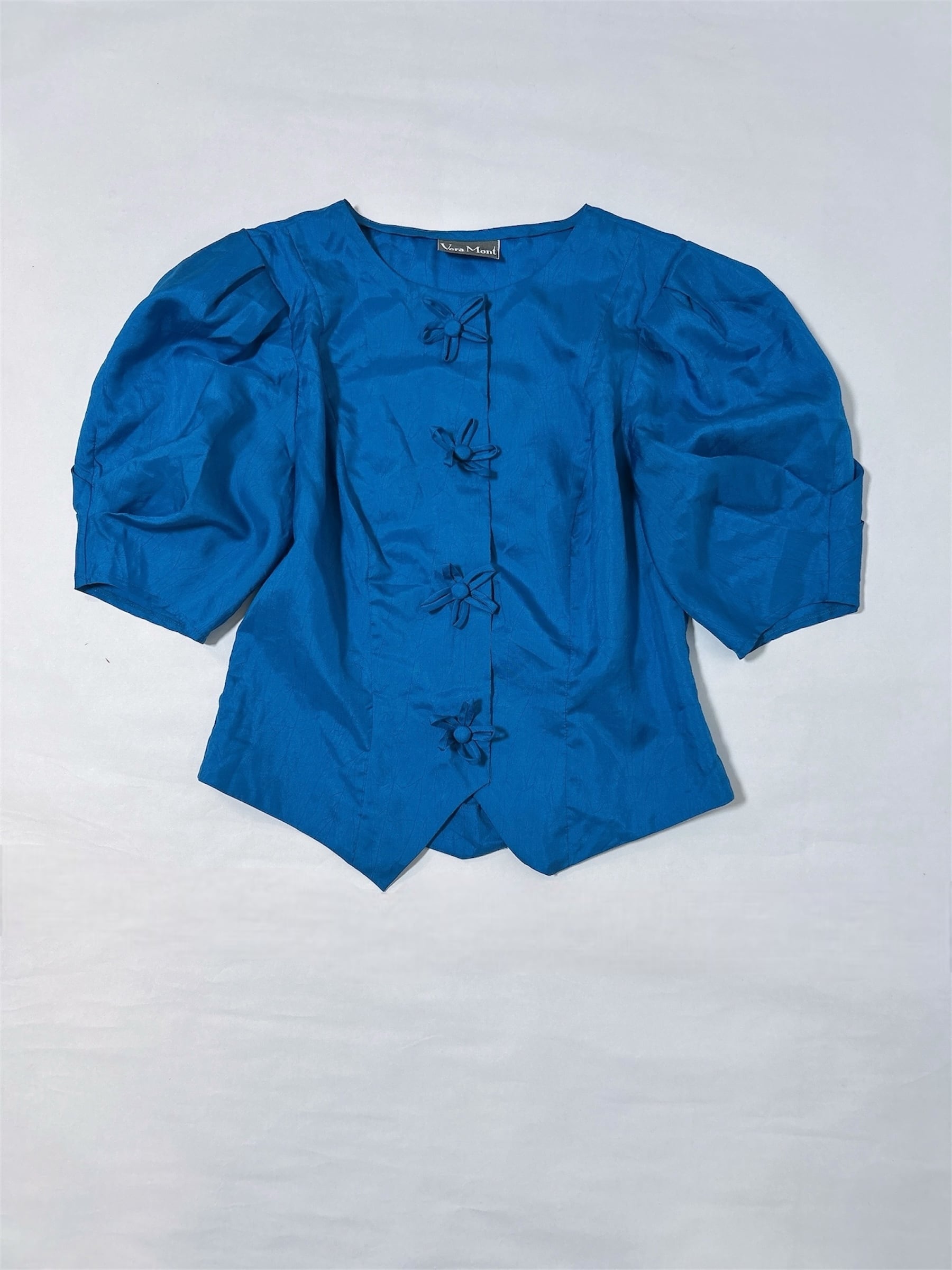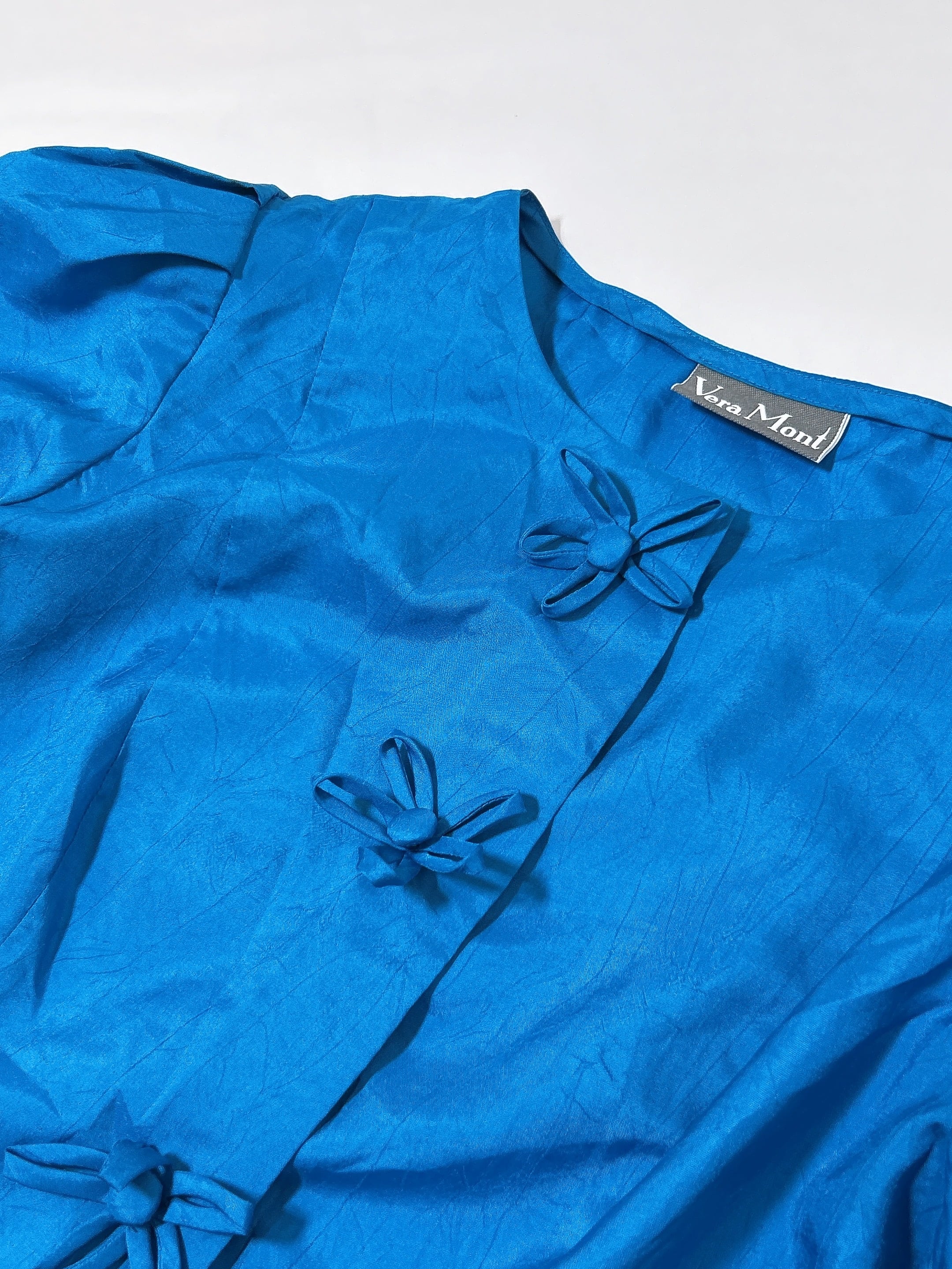 1980’s Vera Mont Blue Puff Sleeve Jacket Blouse m158
