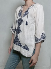 Bohemian Style Embroidered Cotton Top with Tied Drawstring m164