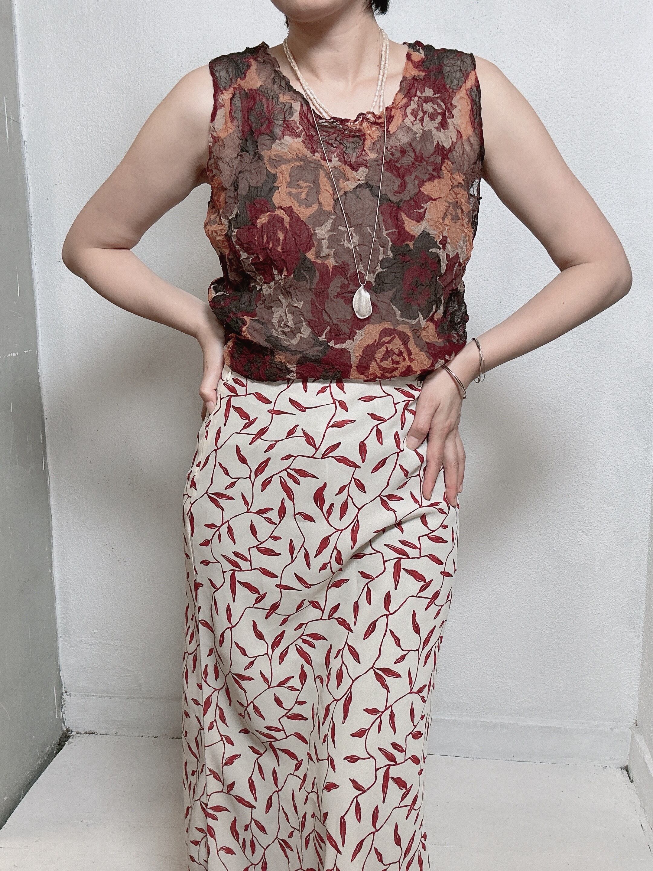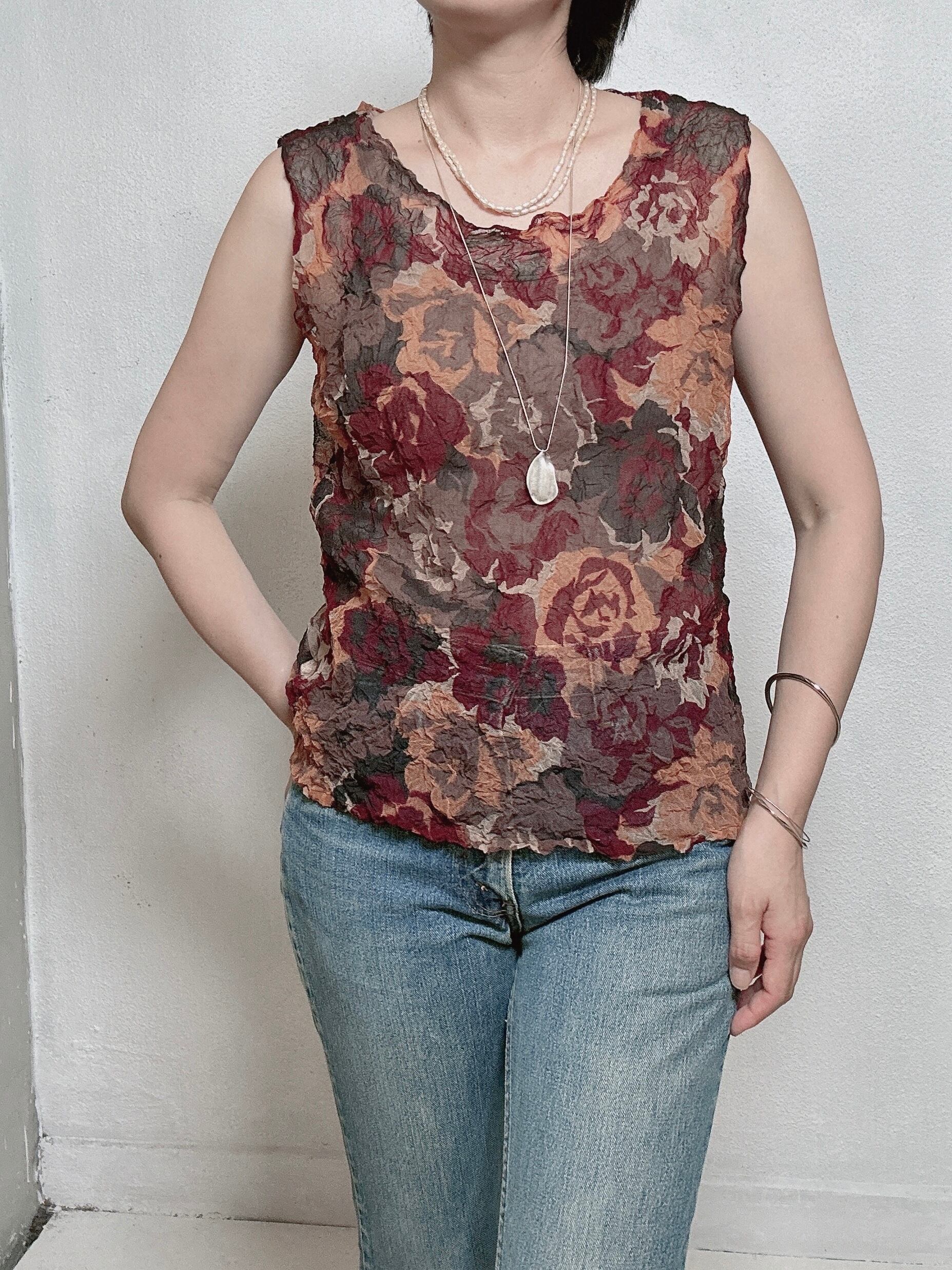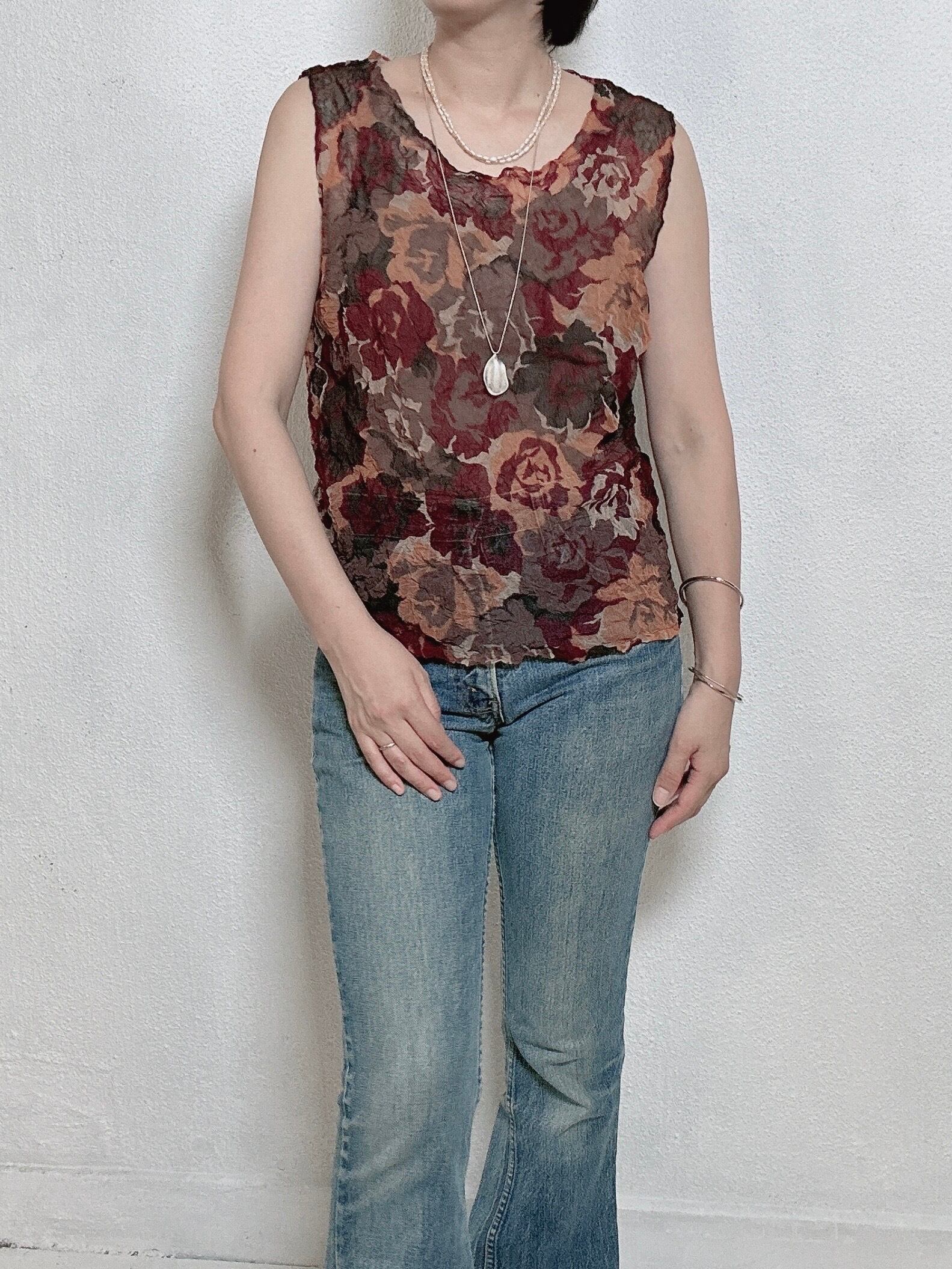 秋のムードを感じさせる、90年代のシアーフローラルトップス。