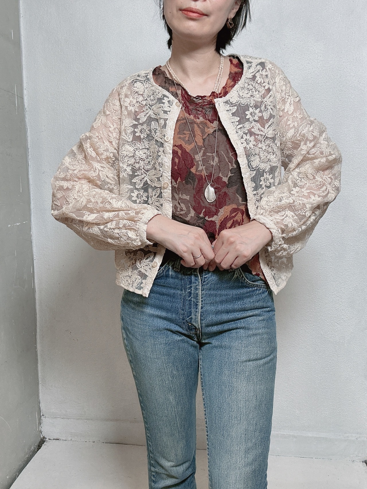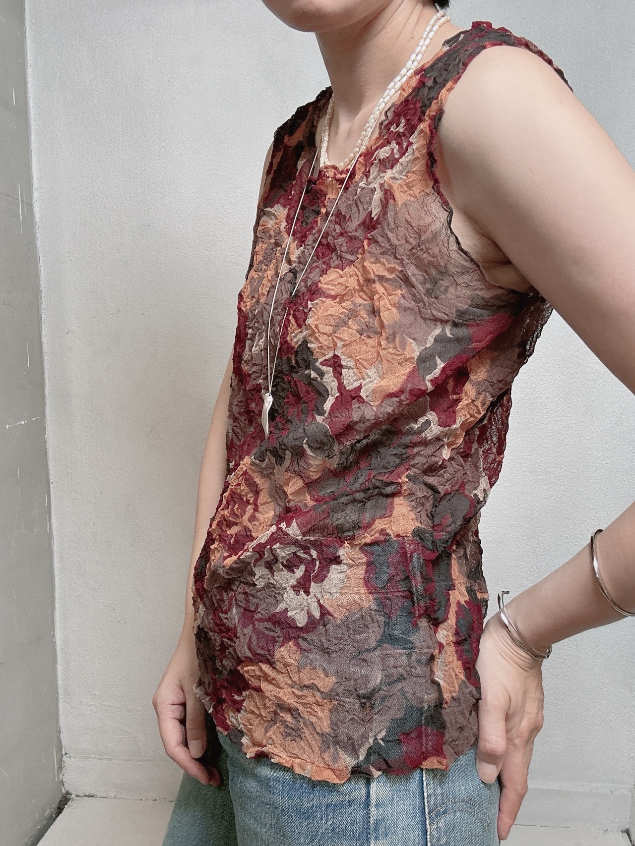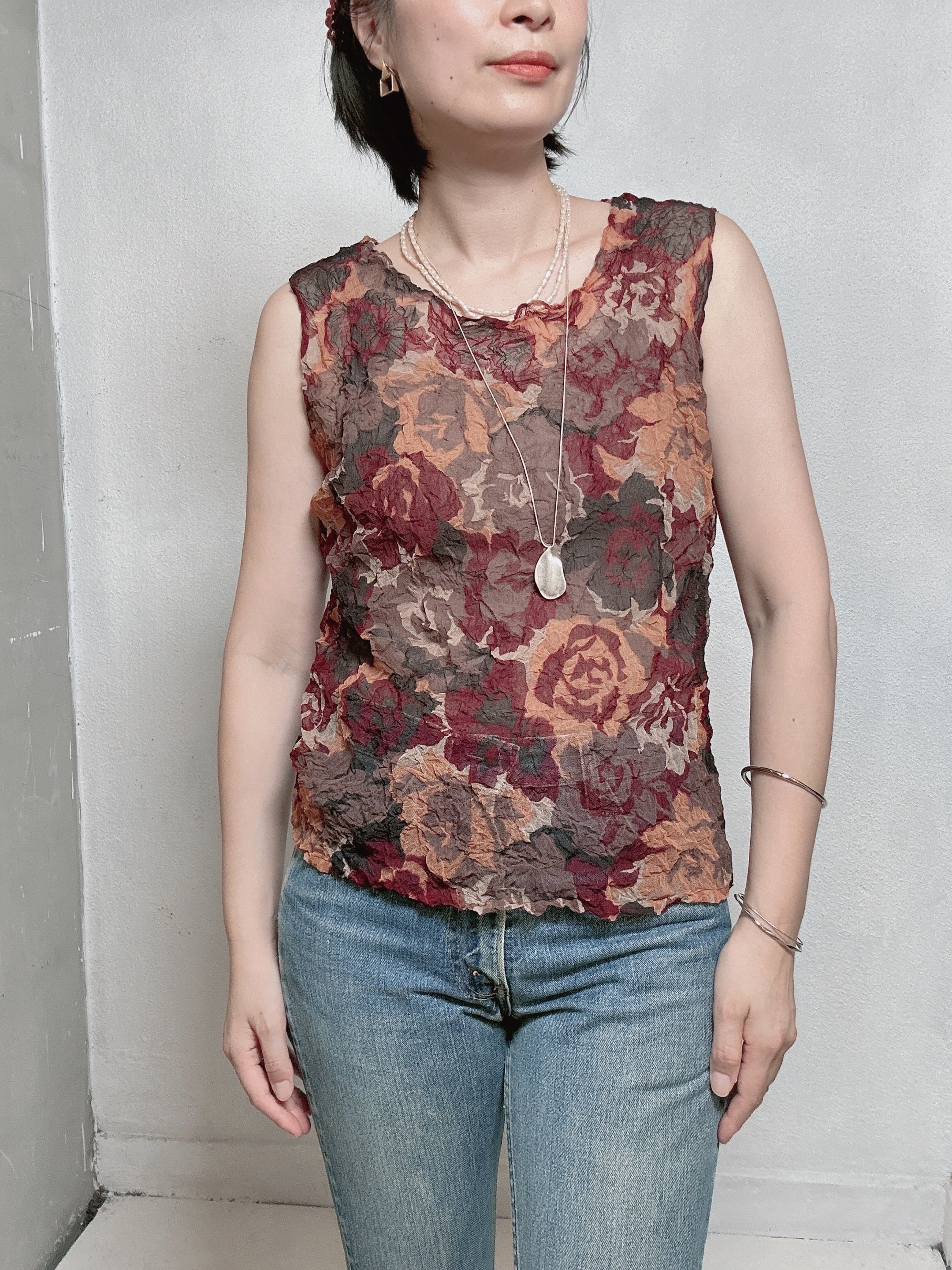 秋のムードを感じさせる、90年代のシアーフローラルトップス。