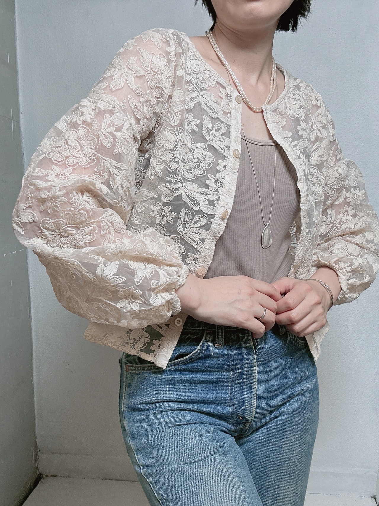 Sheer Floral Lace Jacket – Elegant Layer for Transitional Seasons m171