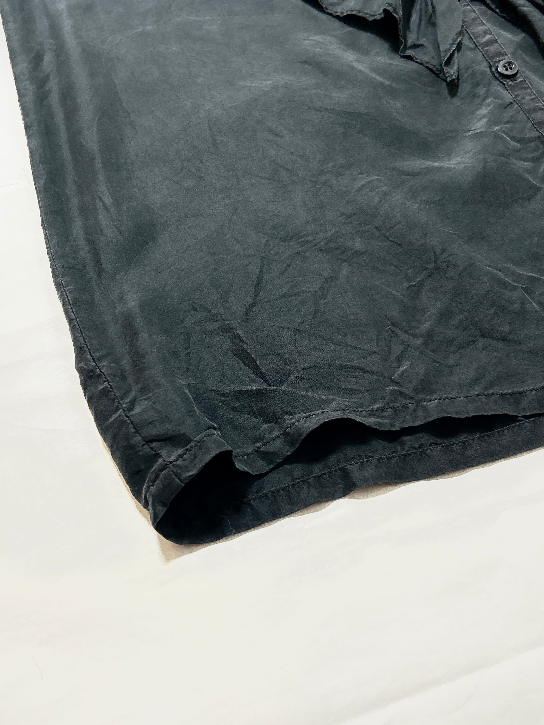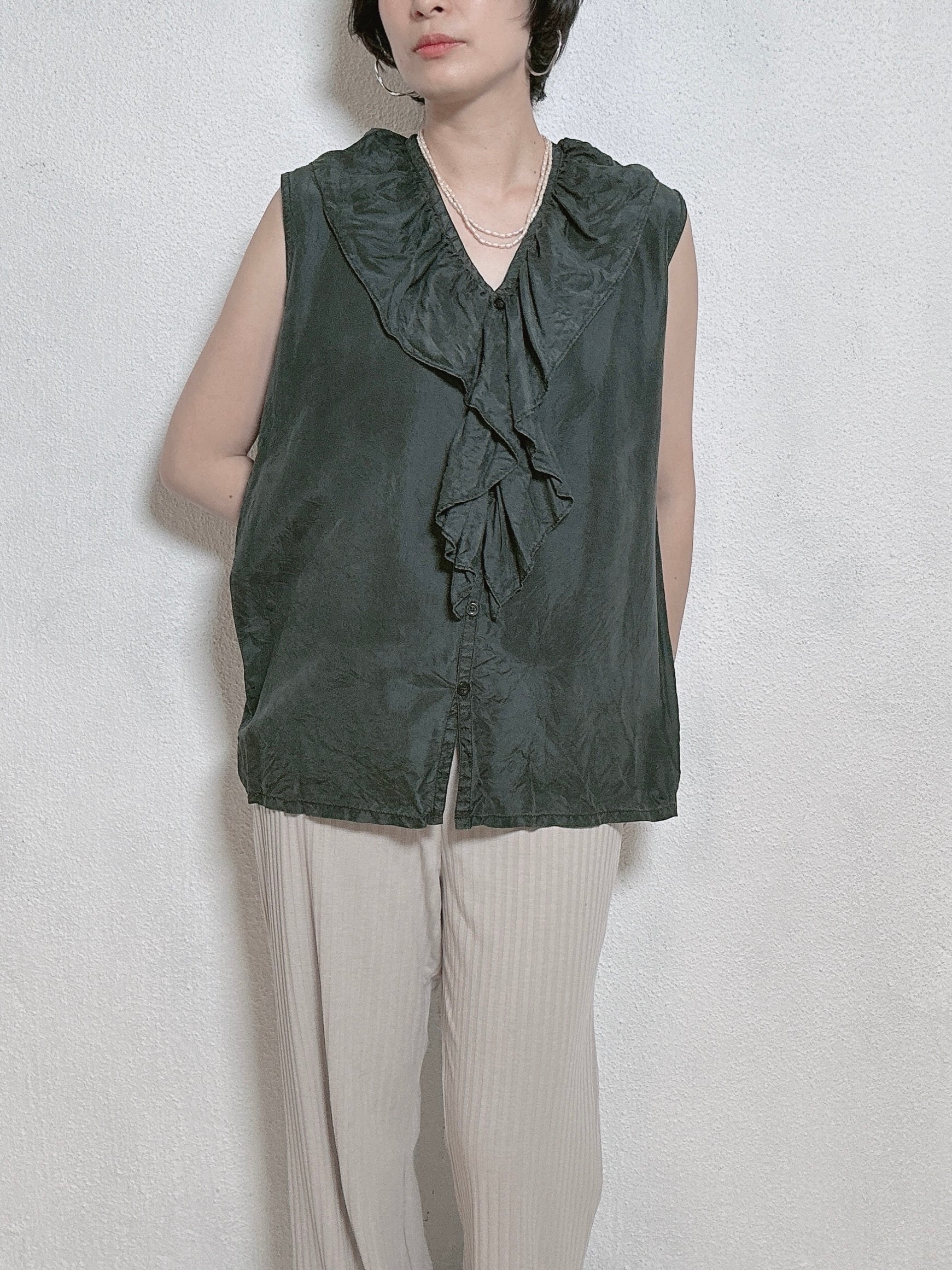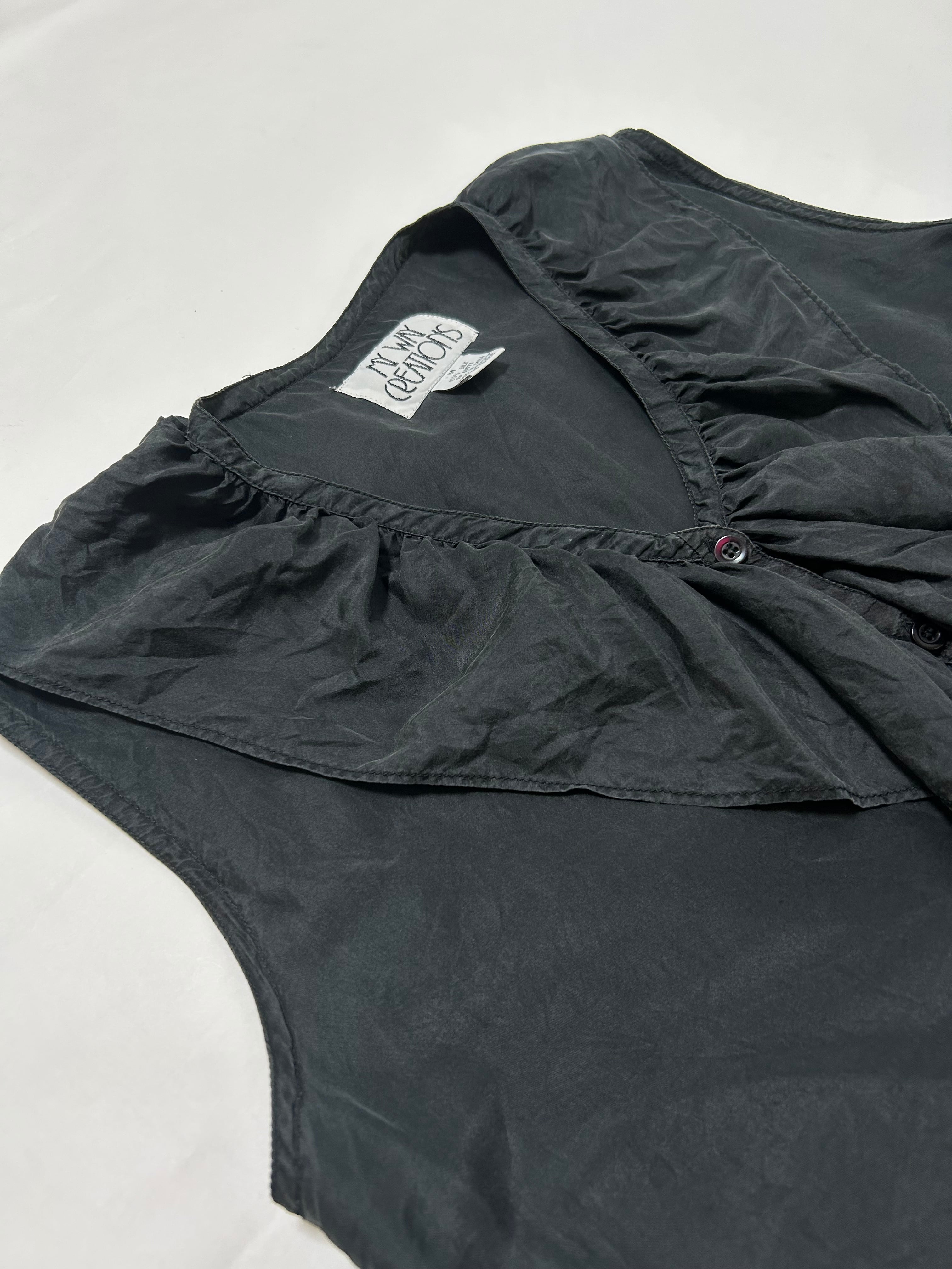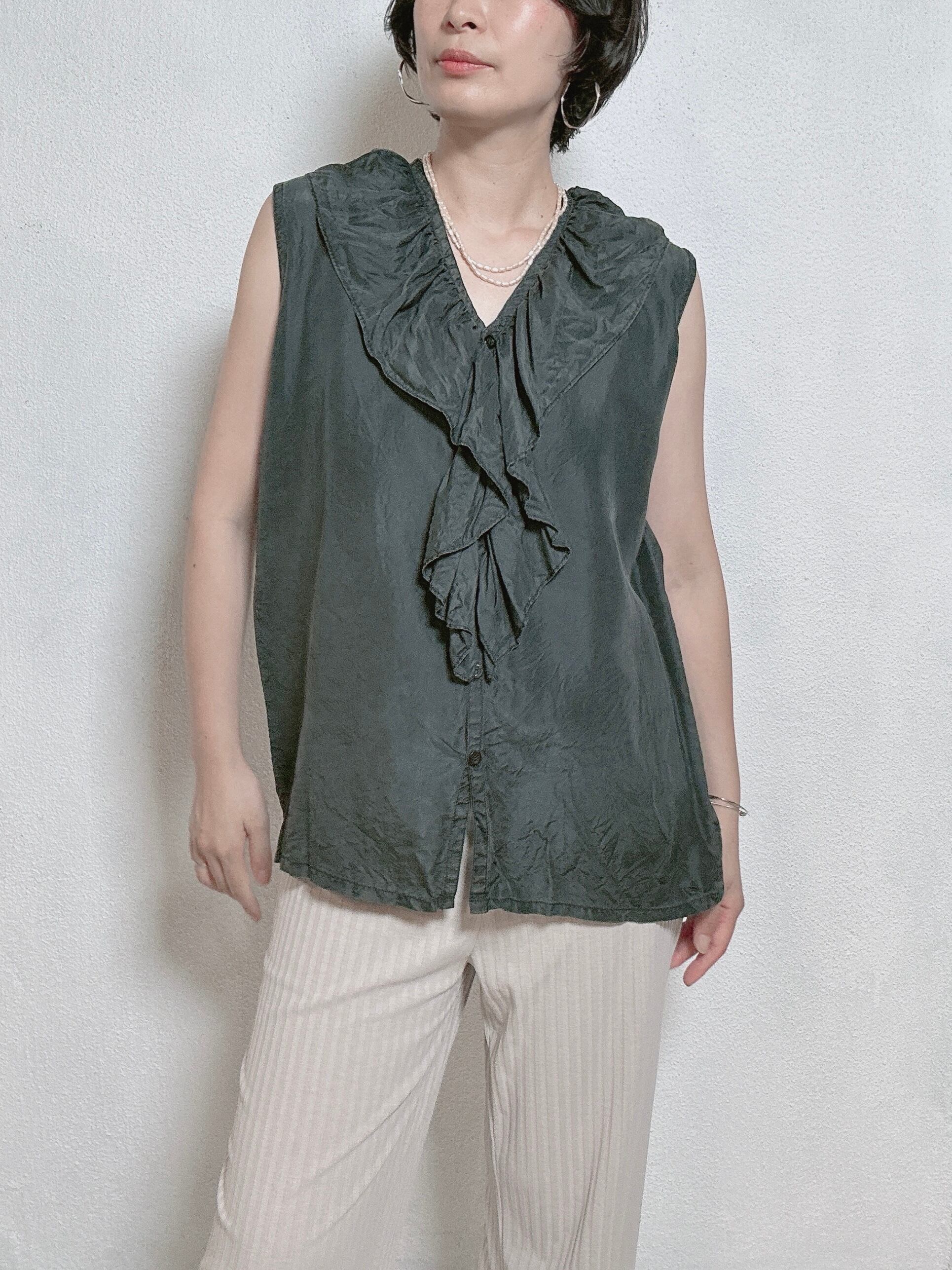 Vintage Silk Ruffle Blouse – Sleeveless, Faded Black m180