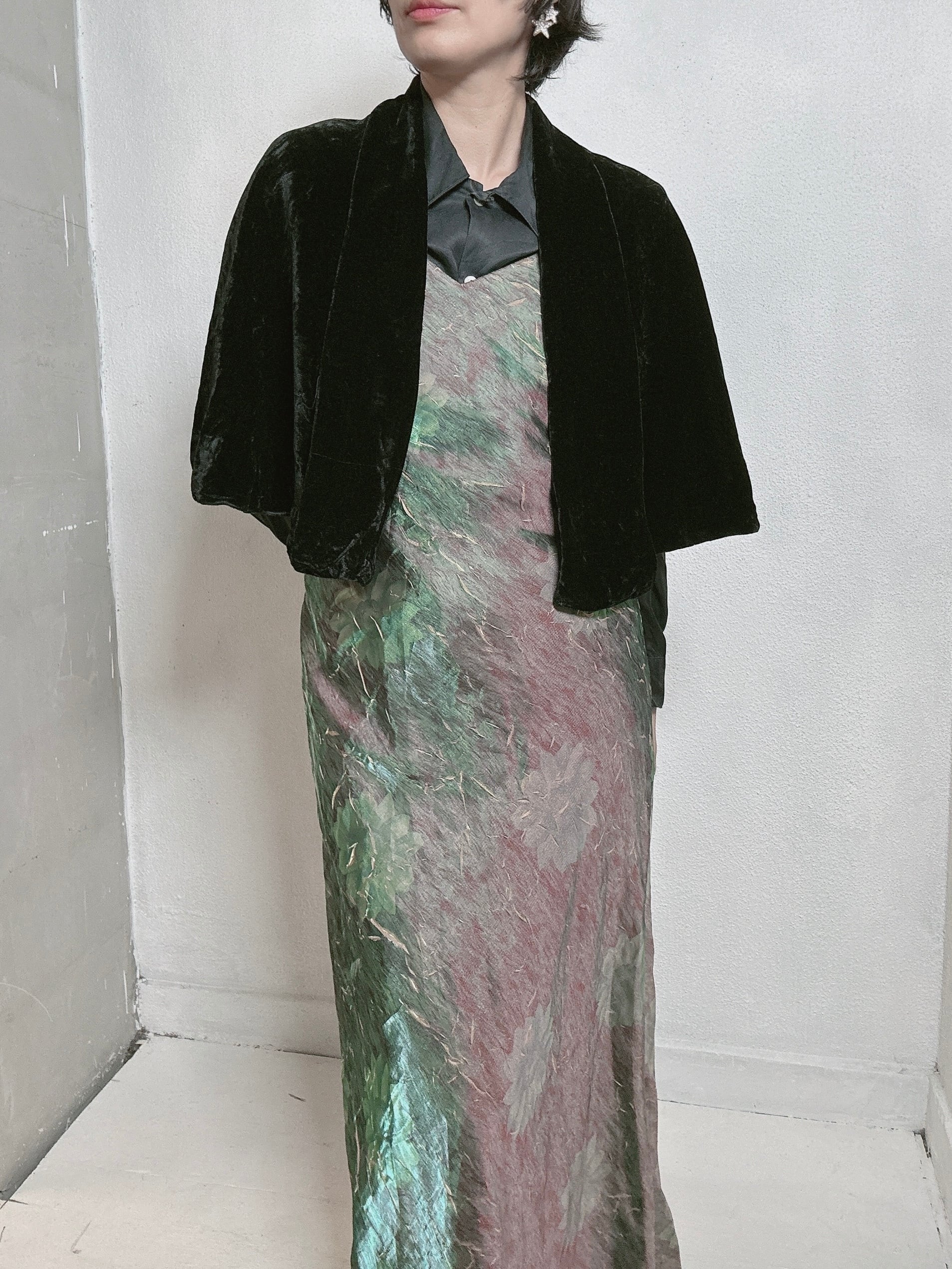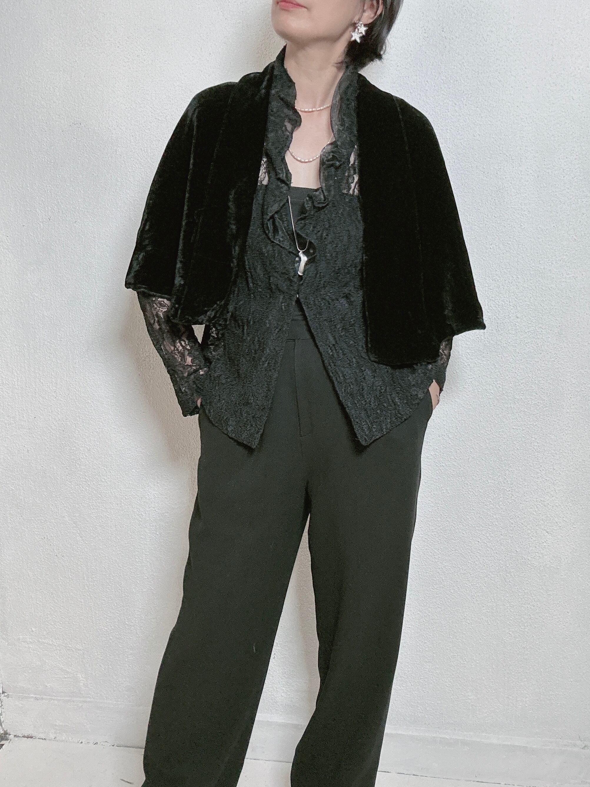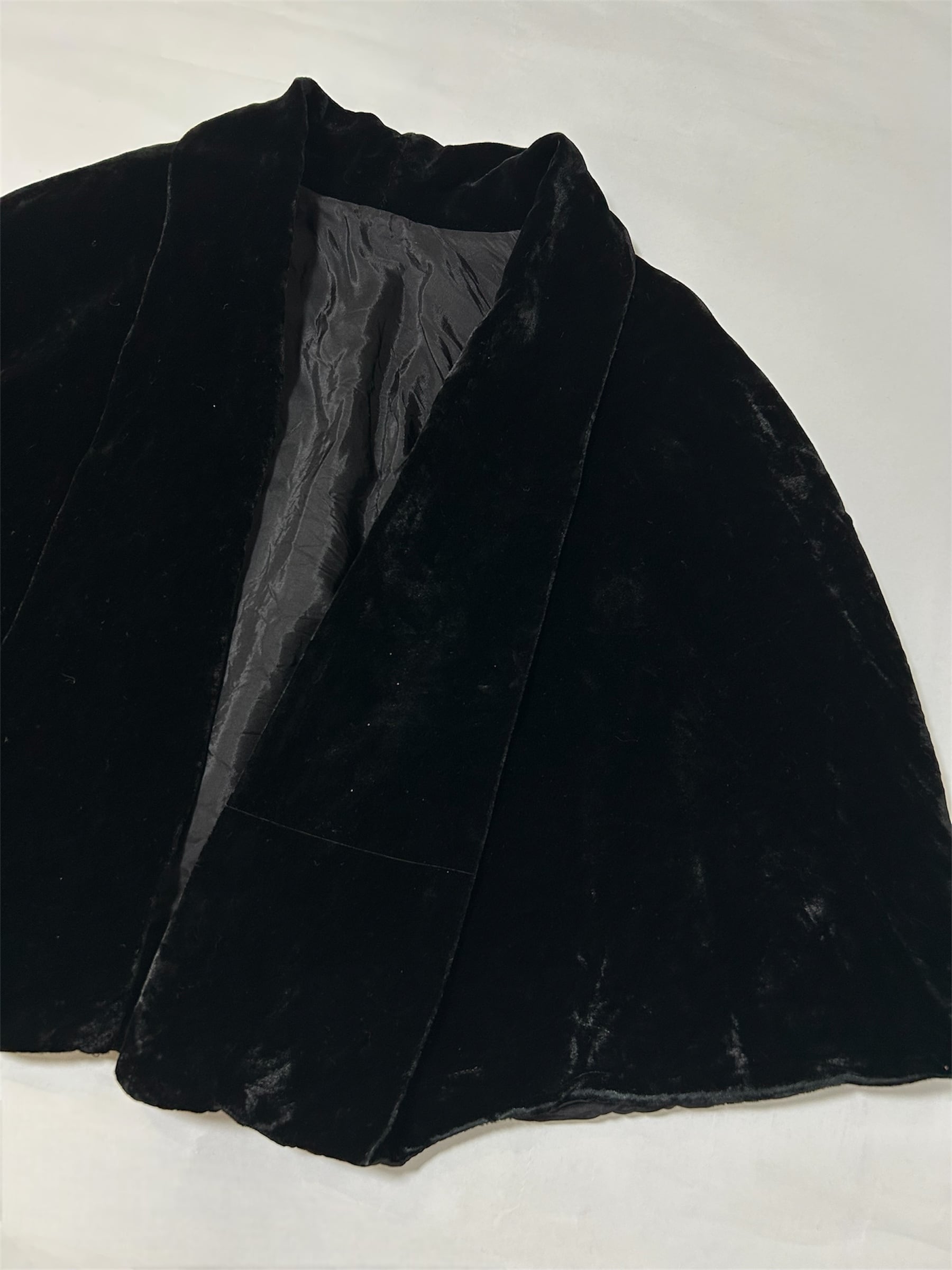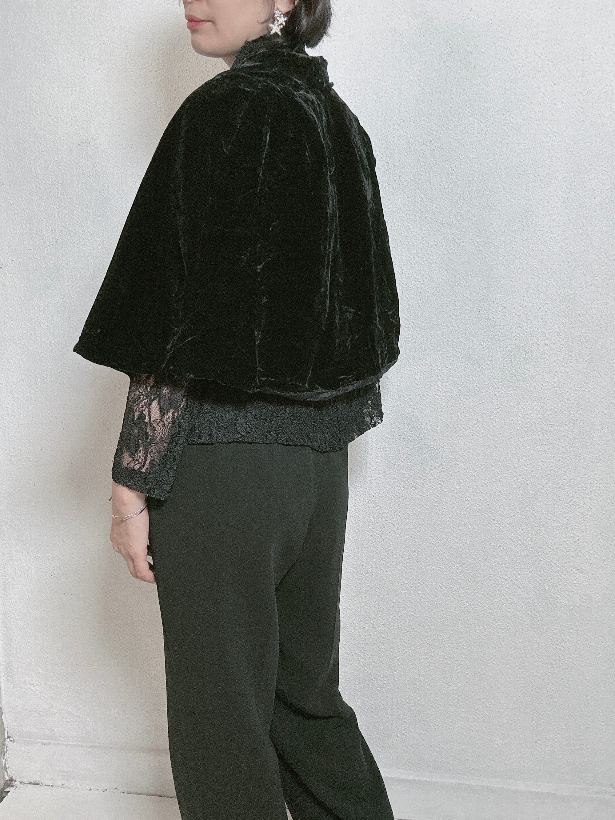 上品な光沢を放つベロア素材が印象的な、ヴィンテージケープジャケット。