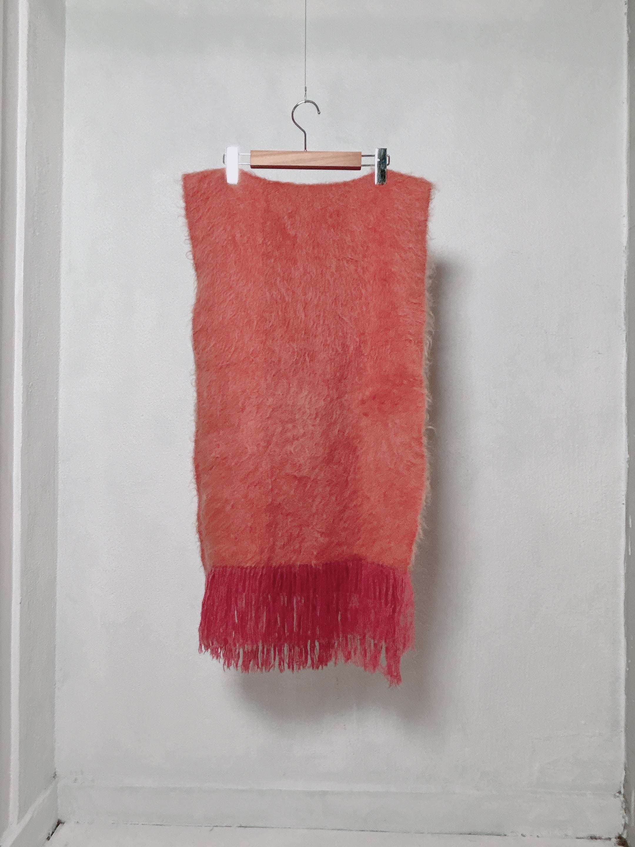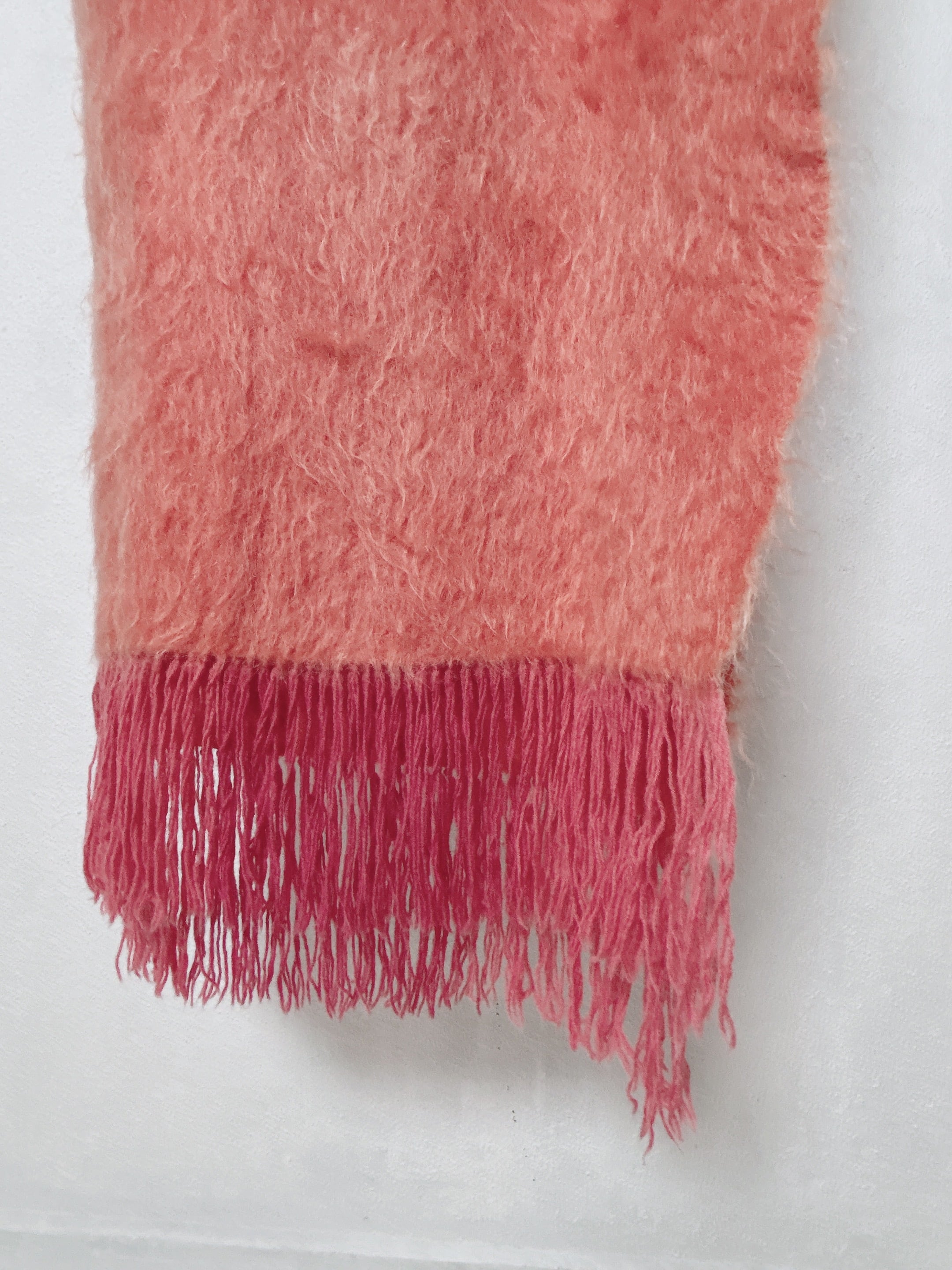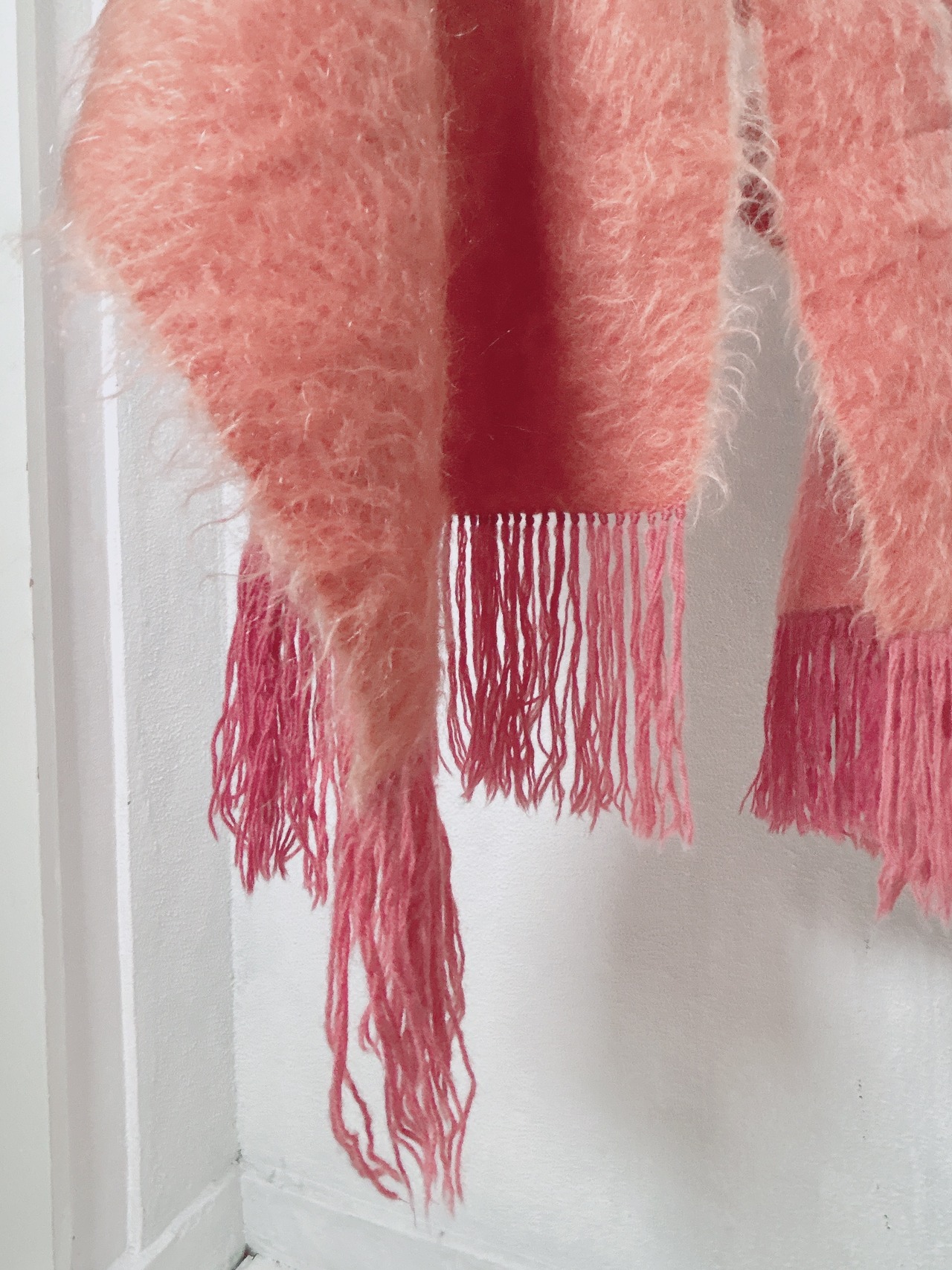 Vintage Mohair Fringe Stole – Soft Coral Pink