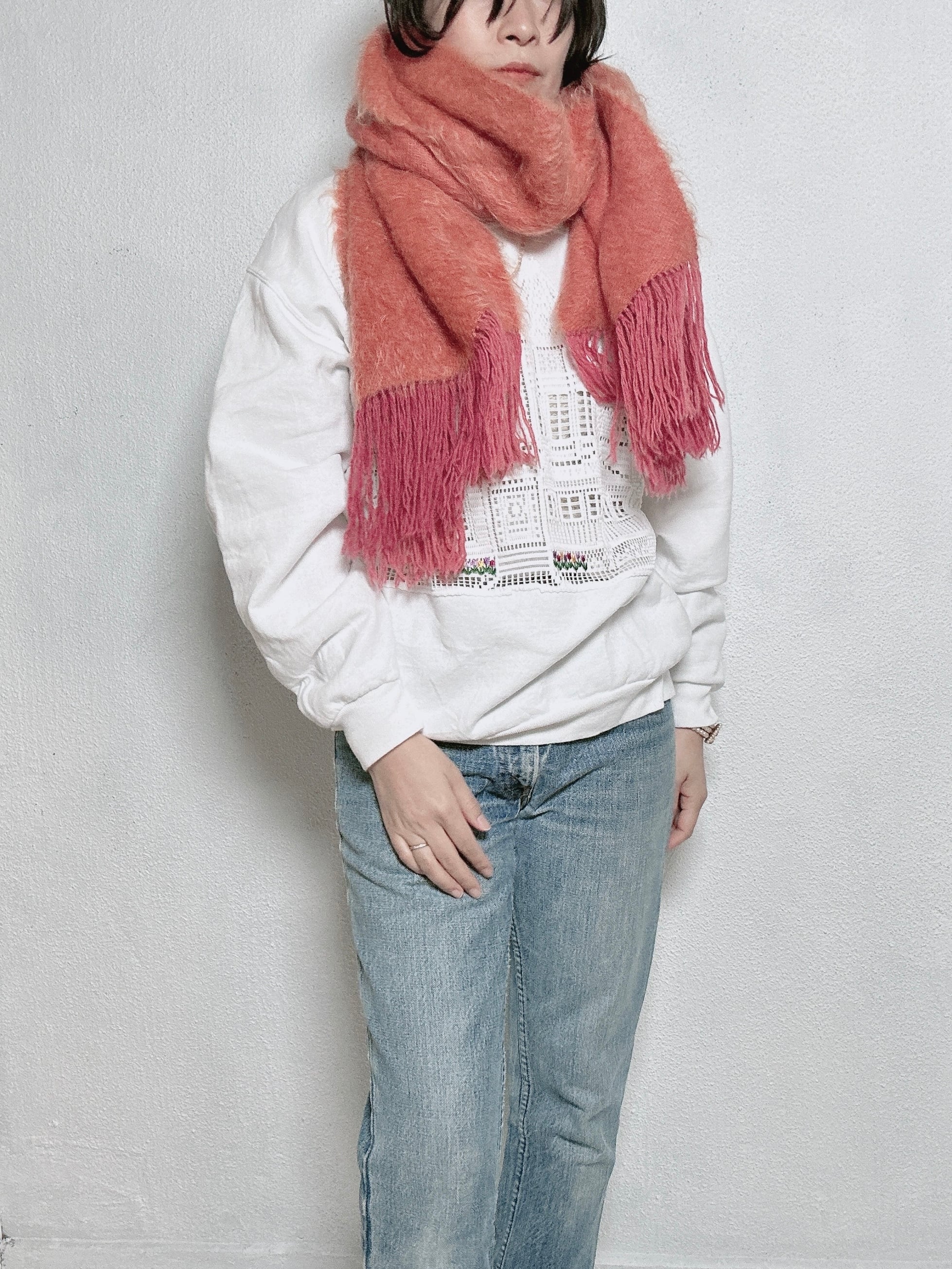 ふんわりと軽やかなモヘア素材を使用した、ヴィンテージのフリンジストール。