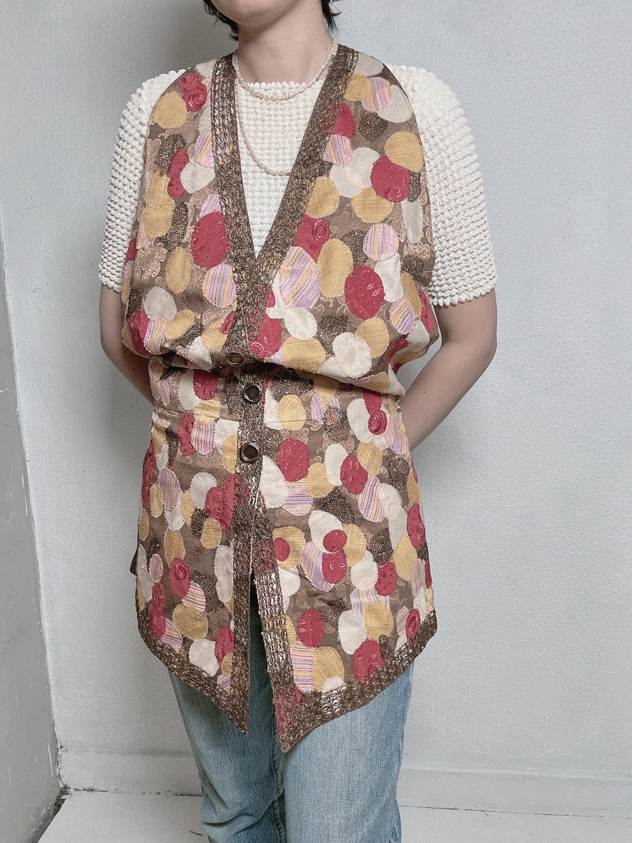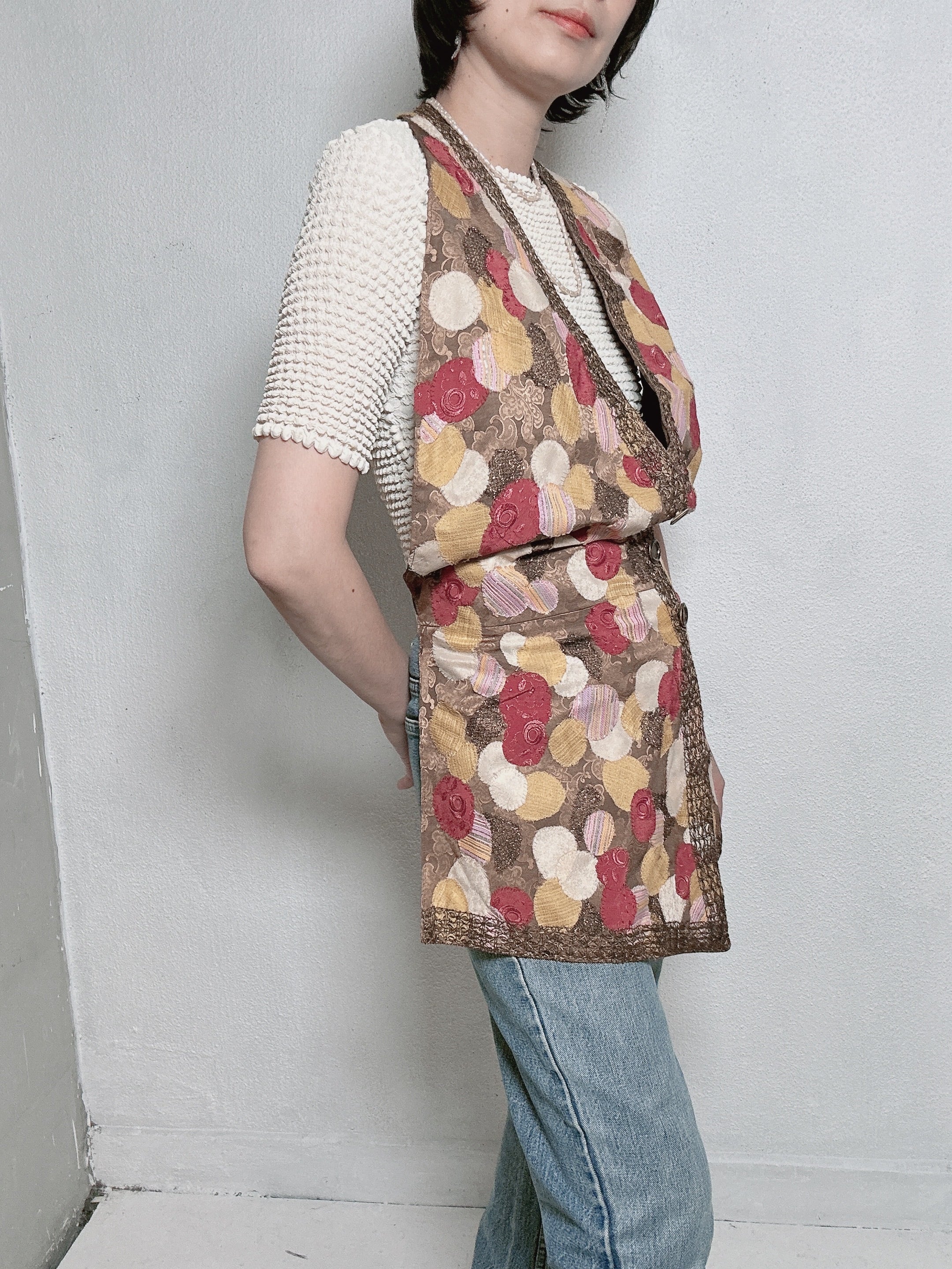ヴィンテージ生地を組み合わせた、パッチワークベスト。