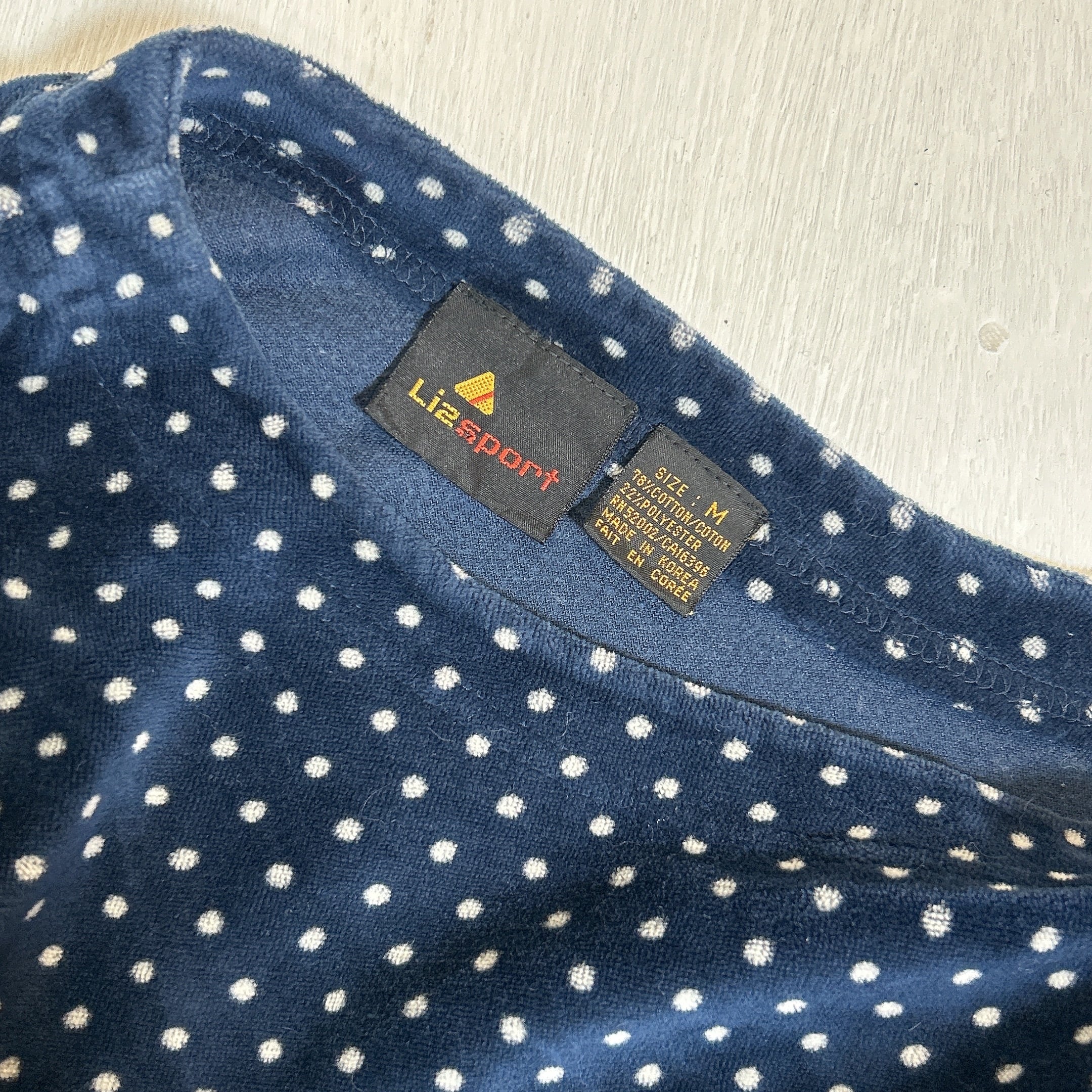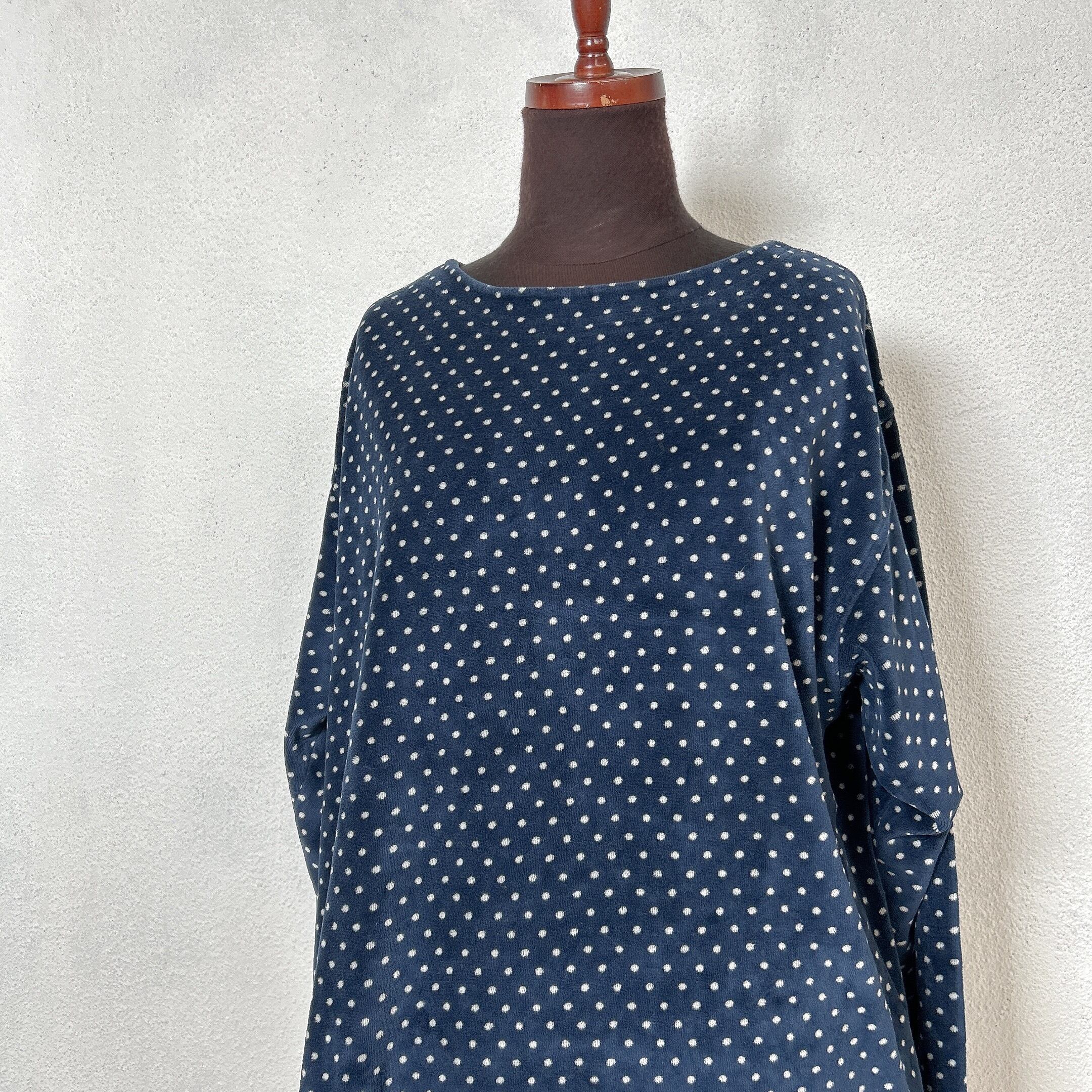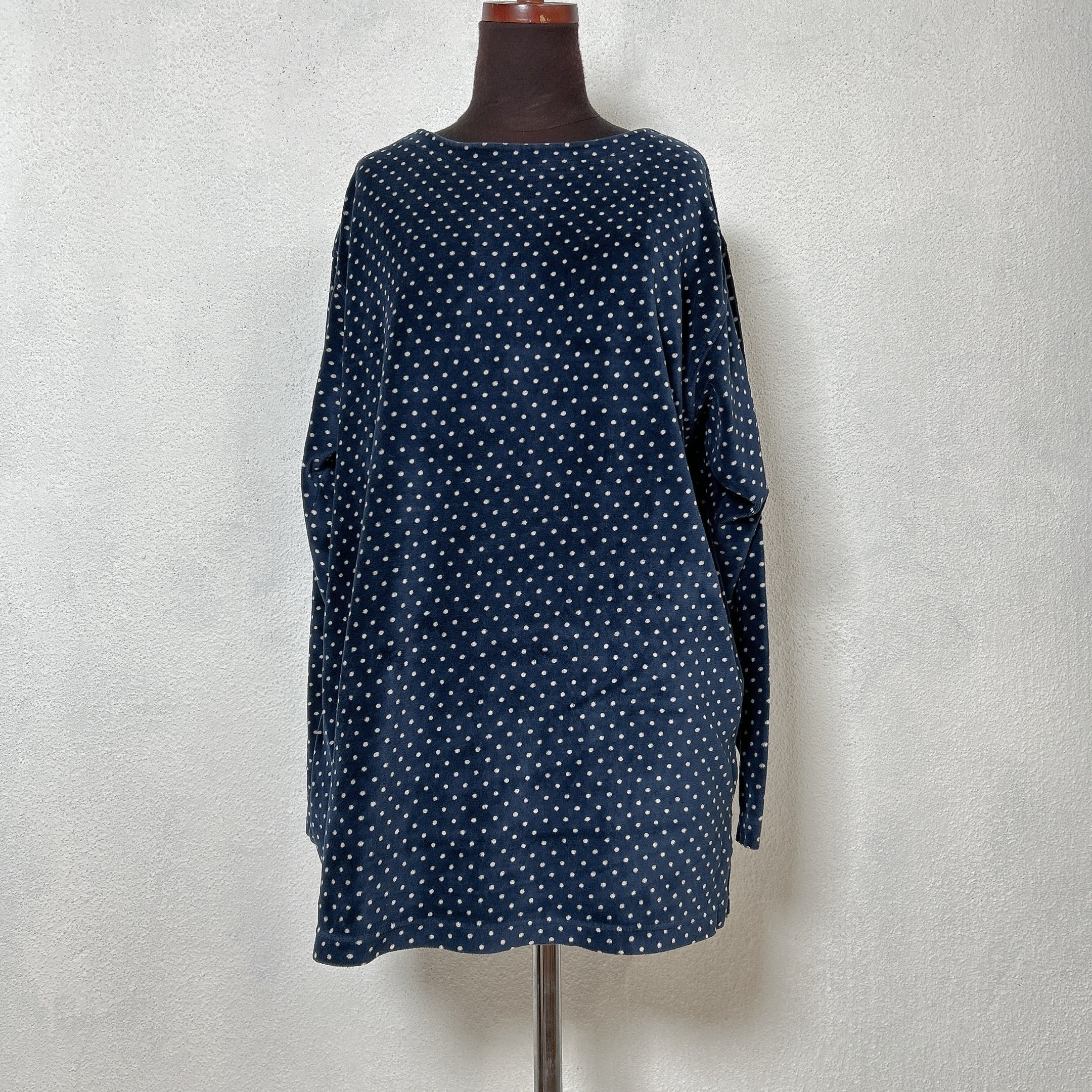 動きやすく軽やかな素材感と上品な光沢感で一枚で決まるドット柄トップスです。