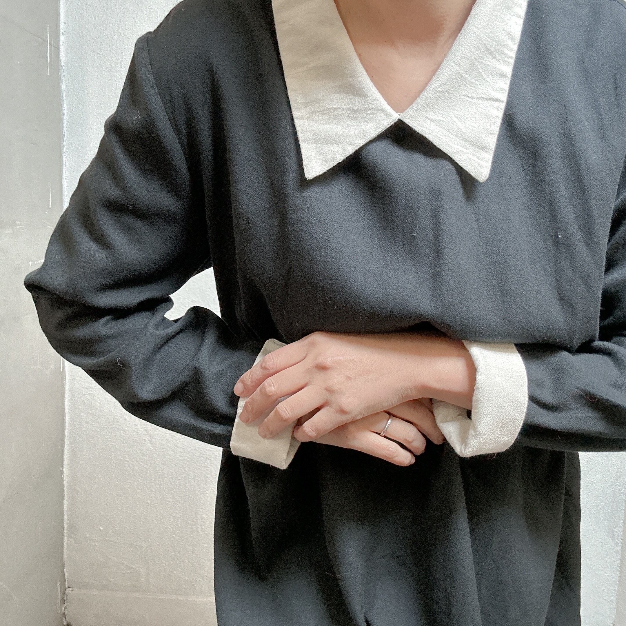 アメリカ製のヴィンテージカラー付きドレスです。クラシックなデザインが魅力的で、ウエストラインを強調するシルエットが女性らしさを引き立ててくれます。