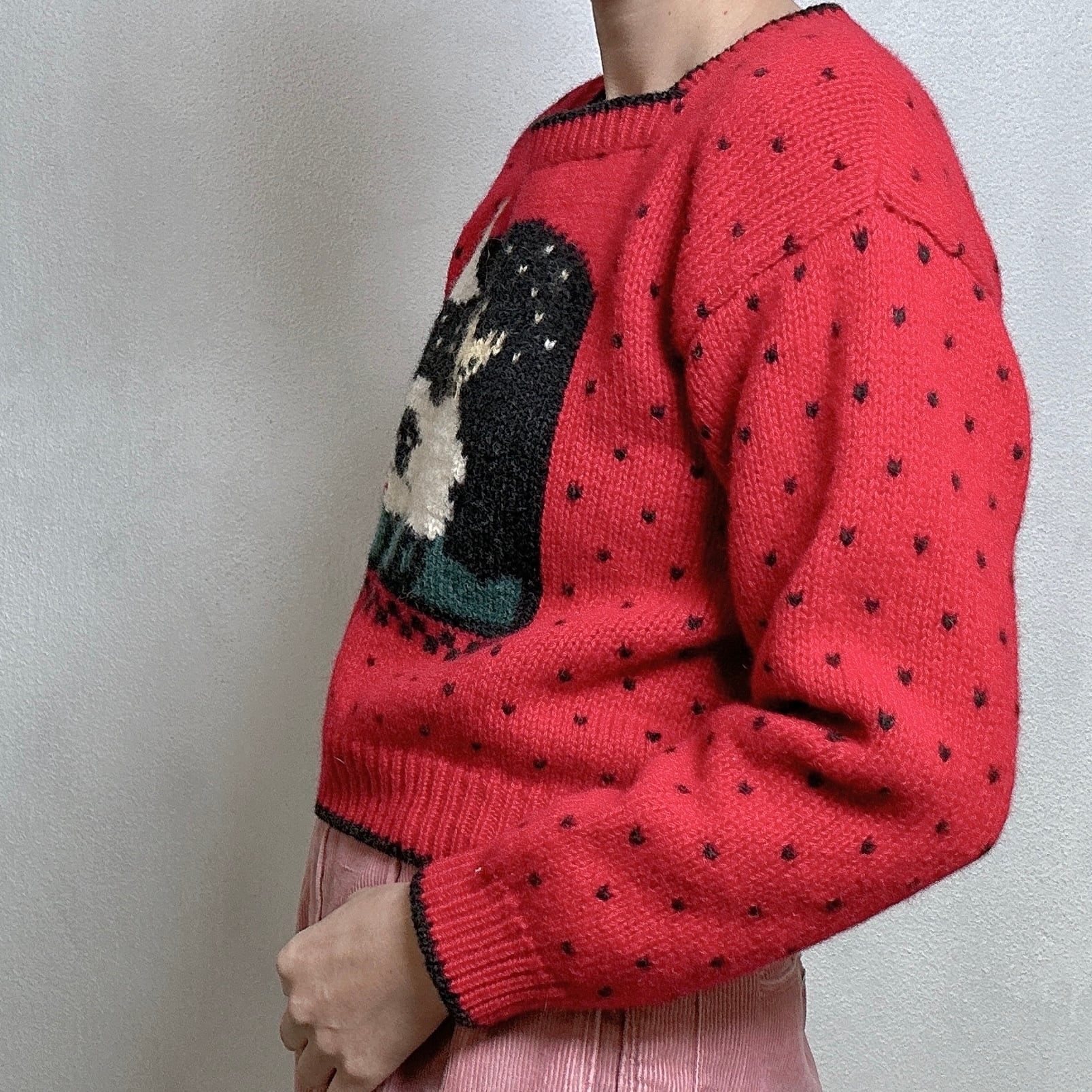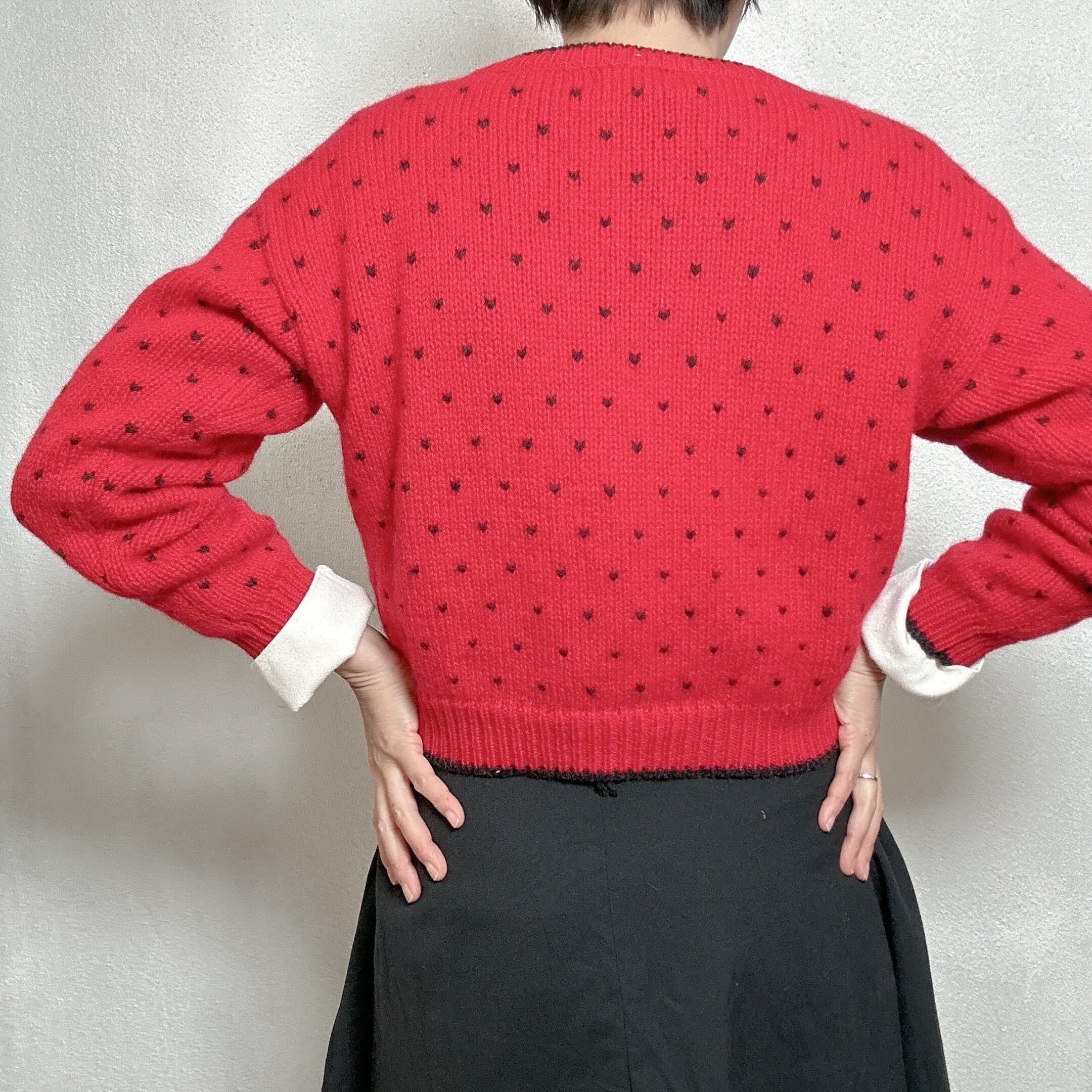 80年代のvintageニットで、小さなハート柄や胸元の羊柄などかわいさが詰まった一枚です。