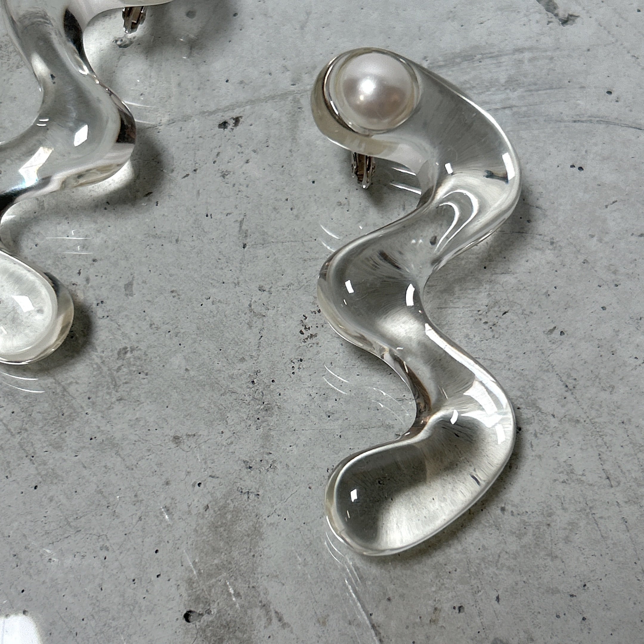 ヴィンテージ感漂うウェーブデザインのクリアイヤリングです。