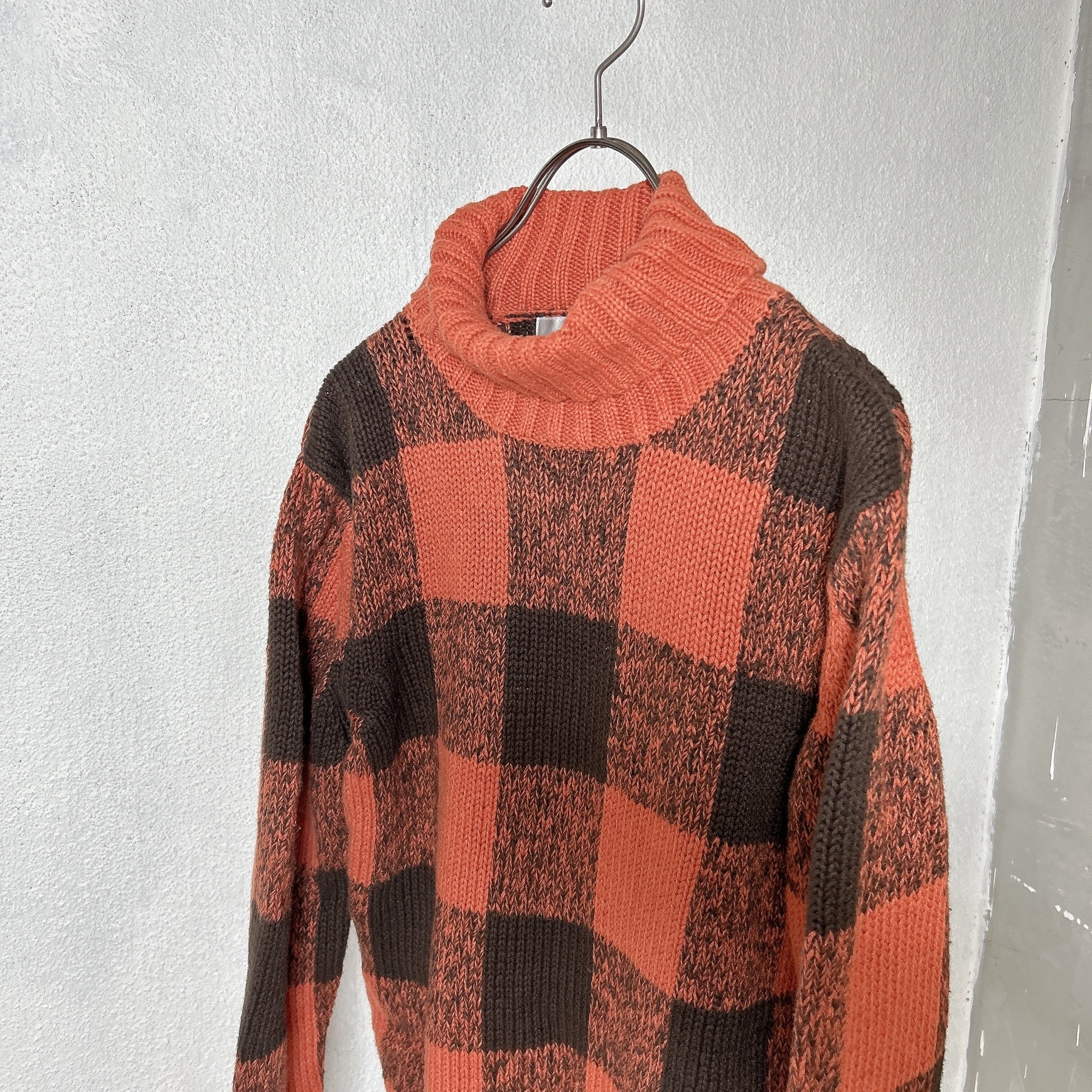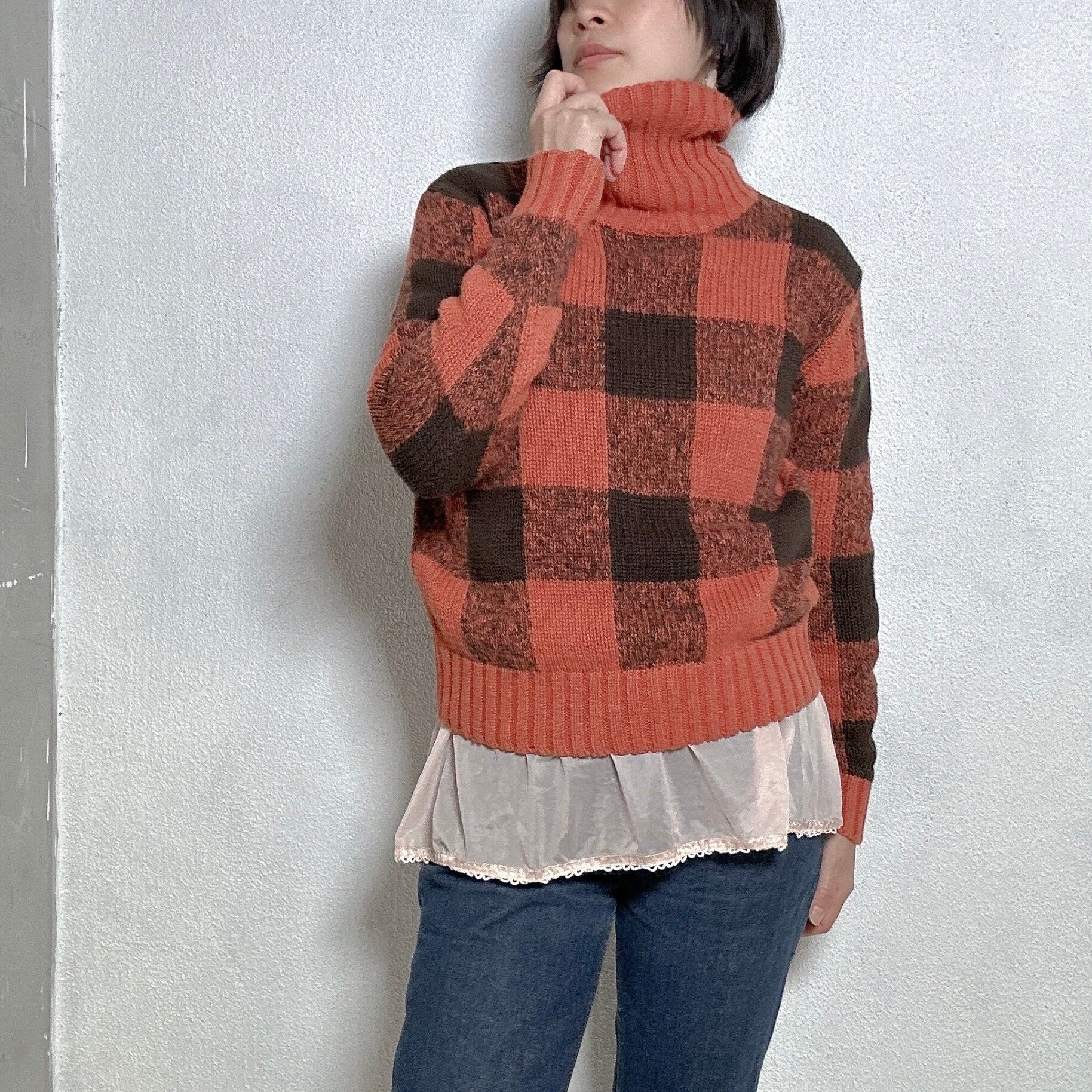 大胆なブロックチェックがアイキャッチで春先スタイルを印象付けてくれるセーター。ハイネックや袖口、裾は無地で切り替えメリハリをプラス。
