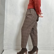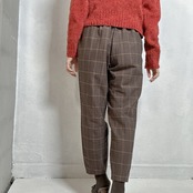クラシックなブラウンチェックが印象的なイージーパンツ。